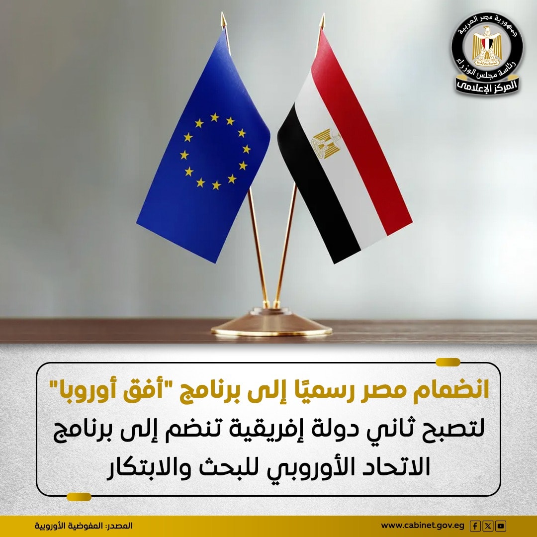 انضمت مصر رسميًا إلى برنامج "أفق أوروبا" (Horizon Europe)، وهو البرنامج الرئيسي للاتحاد الأوروبي المخصص لتمويل البحث والابتكار، وذلك في إطار تعزيز التعاون البحثي والعلمي بين الجانبين.