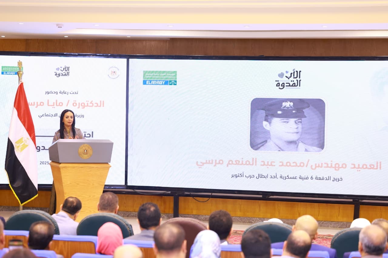 وأكدت الدكتورة مايا مرسي أن وزارة التضامن الاجتماعي آمنت بمبادرة “الأب القدوة” وتعمل فيها بالتنسيق مع مؤسسة العربي لتنمية المجتمع ، إيمانًا منها بأهمية تحفيز الآباء على الحفاظ على التماسك الأسري والقيام بدورهم الطبيعي في تنشئة أطفالهم تنشئة سليمة، كما نكرم في حفلنا الكريم قامات اجتماعية وفنية وثقافية، طارت بعلمها وعملها بعيداً حتى باتت قدوة يُحتذى بها، ودليل أنه ما زال بإمكاننا خلق تأثير حقيقي، ننير به عقول شبابنا، ونخلق حراكاً مجتمعيا على كافة الأصعدة، فخالص الشكر لكل أبطال احتفاليتنا اليوم، واليوم نطلع معكم رسالة أمل في المجتمع المصري: رسالة بأن القيم لا تزال حية في بيوتنا، وبأن هناك نماذج صامتة من الآباء العظماء في كل ركن من أركان مصر تستحق أن تُروى حكاياتها، قد لا يعرفهم الإعلام، وقد لا يتصدرون العناوين، لكنهم في الحقيقة أعمدة البيت المصري التي تقوم عليها هذه الأمة، لدينا أبٌ يعمل ليل نهار ليعلّم أبناءه ويربيهم على الفضيلة، وآخر يغرس فيهم حب الوطن، وثالث يحرم نفسه من متعة الحياة ليوفر لأبنائه حياة كريمة وتعليمًا جيدًا. هؤلاء هم الأبطال الحقيقيون لمصر وعماد هذا الوطن.