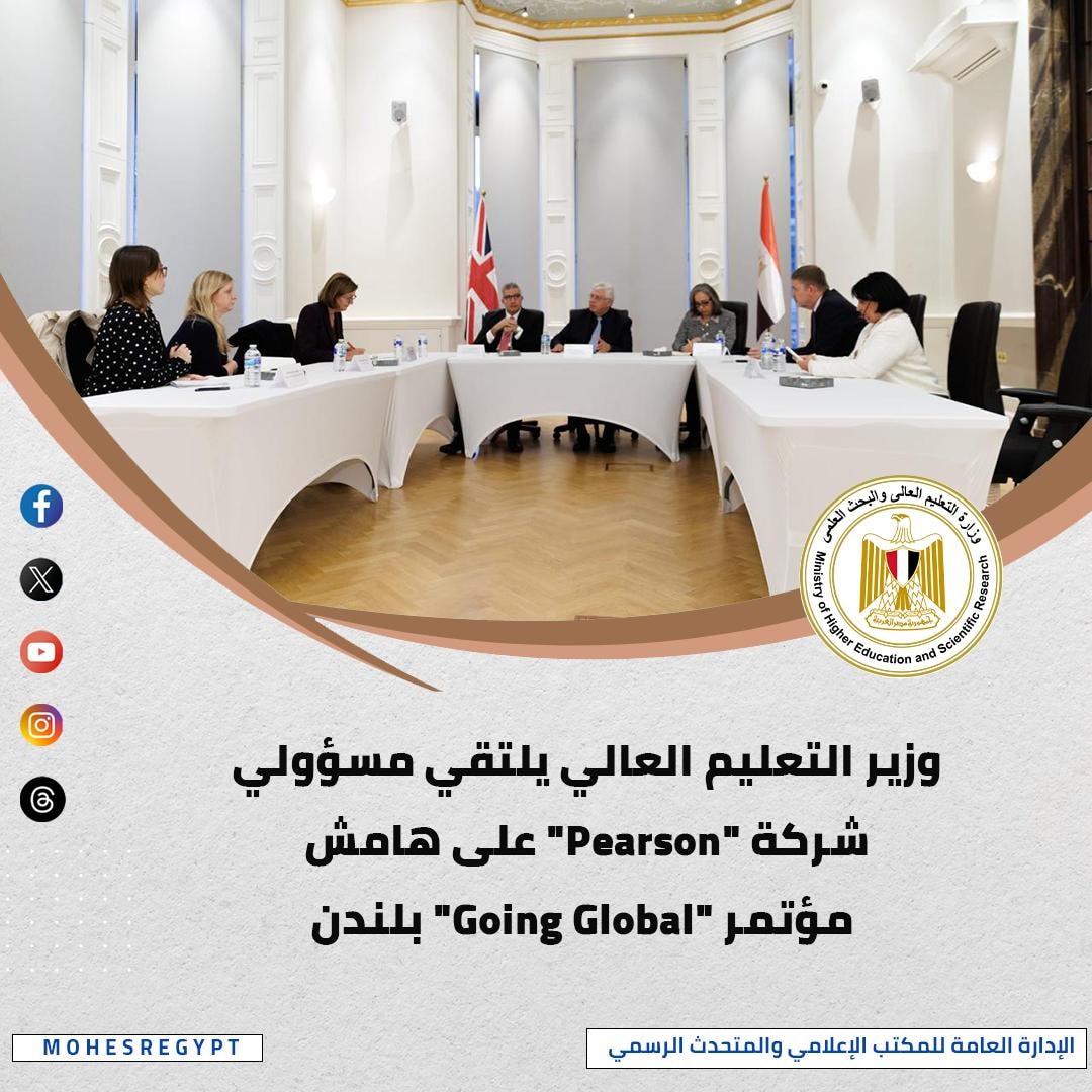 التقى الدكتور أيمن عاشور، وزير التعليم العالي والبحث العلمي، بوفد شركة "Pearson" العالمية، في إطار جهود الوزارة لتعزيز الشراكات مع القطاع التعليمي الدولي، بهدف تطوير المهارات وربط مخرجات التعليم باحتياجات سوق العمل، وخلال اللقاء استعرض الوزير الأهداف الوطنية الإستراتيجية لتطوير التعليم العالي والتدريب المهني والتقني، بما يتوافق مع متطلبات تحقيق التنمية المستدامة ورؤية مصر ٢٠٣٠، وأكد وفد شركة "Pearson" التزام الشركة الكامل بتقديم خبراتها التقنية والتربوية للوزارة، من خلال تصميم برامج مشتركة تلبي الاحتياجات الوطنية، وتعزز من قدرات الخريجين المصريين، وتمكنهم من المنافسة في بيئة العمل العالمية.