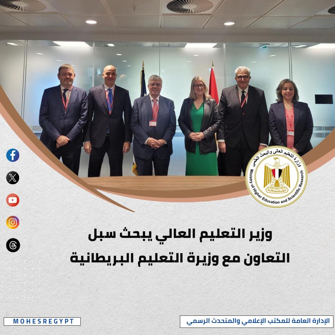 التقى الدكتور أيمن عاشور وزير التعليم العالي والبحث العلمي، بالسيدة بارونيس سميث، وزيرة التعليم البريطانية، وذلك على هامش مشاركة مصر في المؤتمر السنوي "Going Global"، وخلال الاجتماع أكد الدكتور أيمن عاشور أن تدويل التعليم هو أحد أعمدة الإستراتيجية الوطنية للتعليم العالي والبحث العلمي، مسلطًا الضوء على اهتمام مصر بالتعليم العابر للحدود، خاصة وأن نحو نصف أفرع الجامعات الأجنبية العاملة في مصر هي جامعات بريطانية، مما جعل مصر تتقدم لتحتل المركز الرابع بدلًا من المركز الخامس، في ترتيب الدول التي تحتضن "التعليم البريطاني العابر للحدود" على مستوى العالم، وذلك وفقًا لأحدث تقرير صادر عن University UK International لتصبح مصر مركزًا للتعليم العالي والبحث العلمي في المنطقة، حيث تستضيف حاليًا العديد من الطلاب الوافدين من مختلف دول العالم.