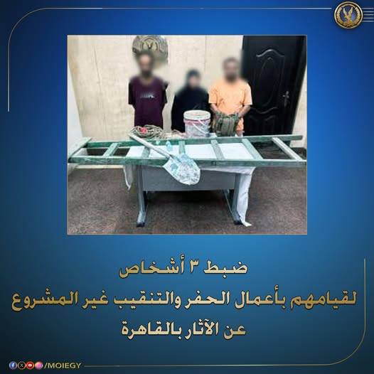 «البحث على ذهب الفراعنة»..ضبط 3 أشخاص لقيامهم بالتنقيب عن الآثار بالقاهرة