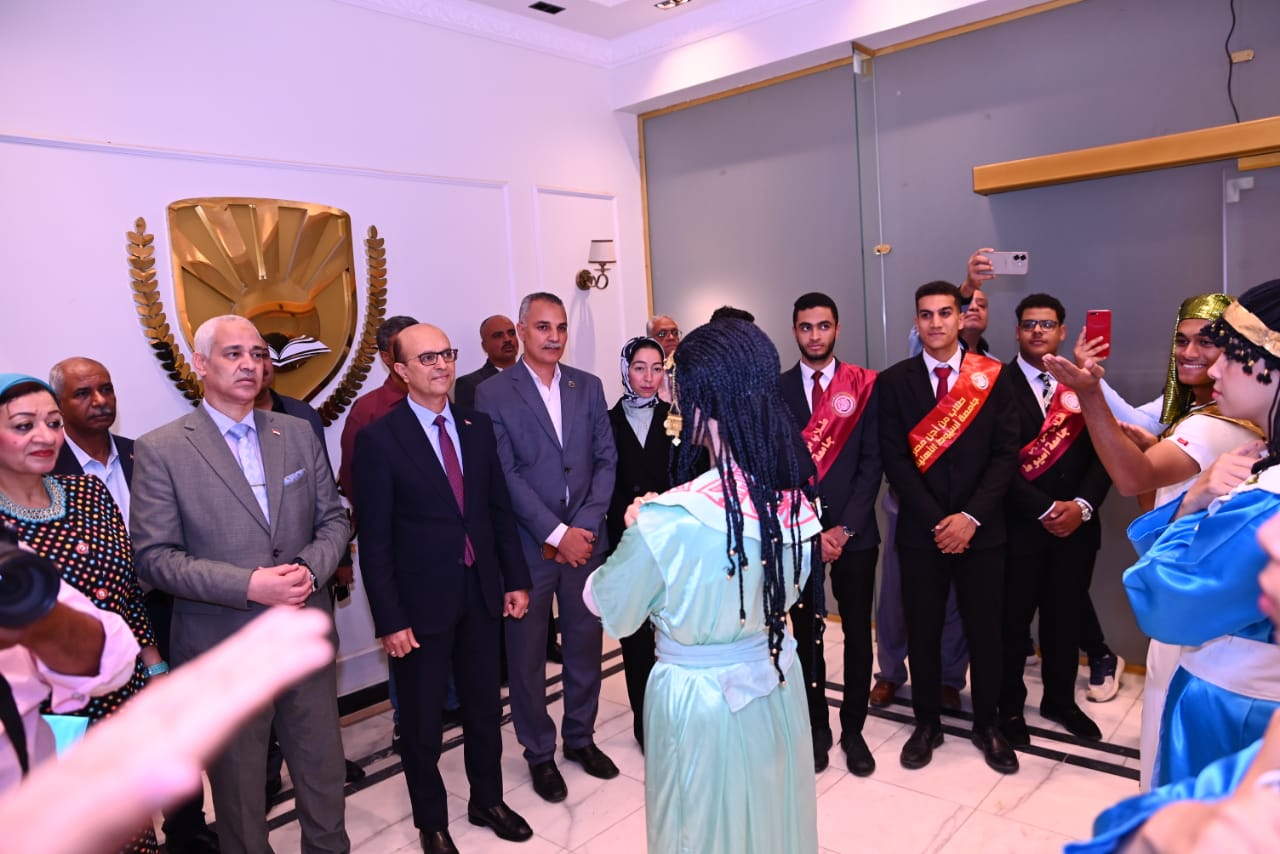 وجاءت الاحتفالية تحت إشراف الدكتور أحمد عبدالمولى، نائب رئيس الجامعة لشئون التعليم والطلاب، والدكتورة مديحة درويش، المشرف العام على الأنشطة الطلابية، والدكتور هيثم إبراهيم، مدير عام الإدارة العامة لرعاية الطلاب، في إطار حرص الجامعة على مشاركة أبنائها متابعة هذا الحدث الذي وصفه الجميع بأنه فخر لكل مصري ورسالة جديدة للعالم عن عظمة الحضارة المصرية وقدرتها على الإبهار المتجدد.