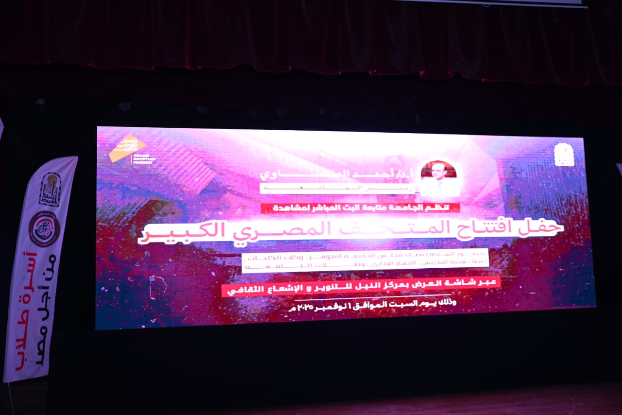 جامعة أسيوط تحتفي بالافتتاح التاريخي للمتحف المصري الكبير.. والمنشاوي: «إنجاز يجسد عبقرية المصريين ويُلهم الأجيال الجديدة»