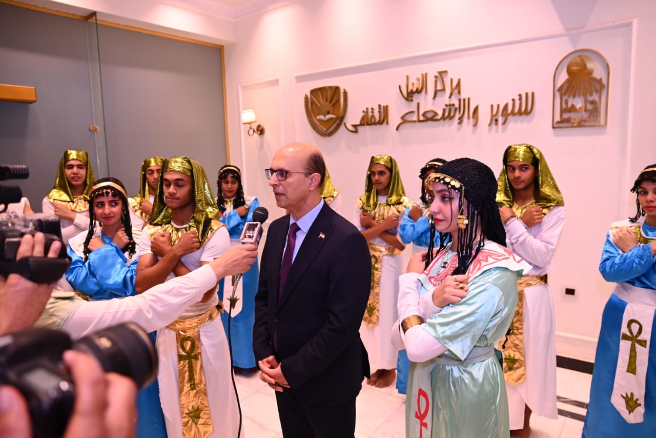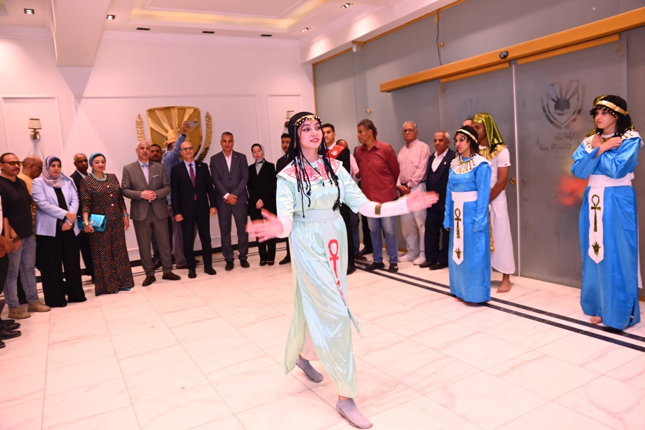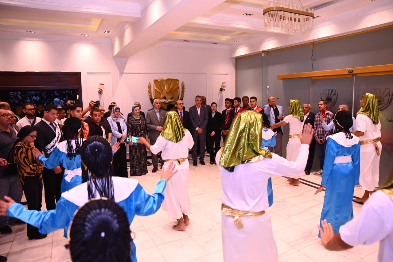 وشهدت الفعالية متابعة البث الحي لافتتاح المتحف المصري الكبير، تخللها فقرات فنية قدمها منتخب الفنون الشعبية بجامعة أسيوط، تضمنت عروضًا فرعونية وغنائية عبّرت عن روح الفخر والانتماء بالحضارة المصرية العريقة، وسط تفاعل كبير من الطلاب الذين أظهروا وعيًا وطنيًا وفهمًا عميقًا لقيمة الحدث.