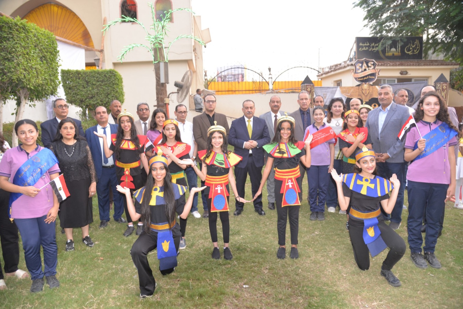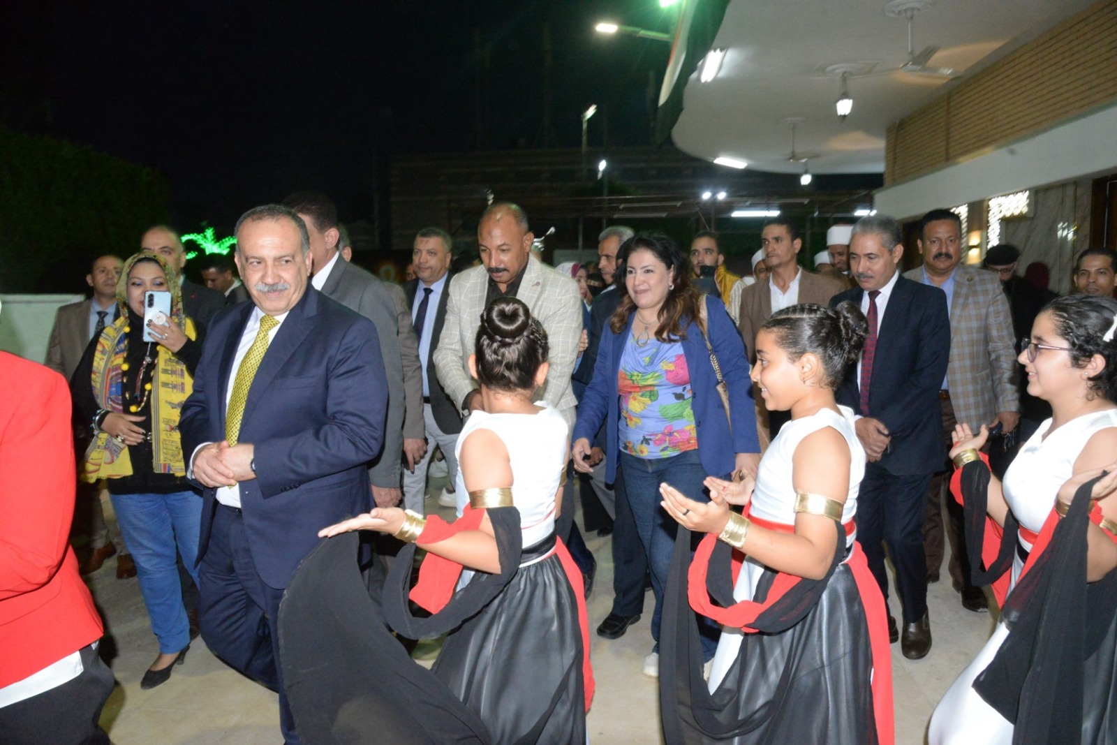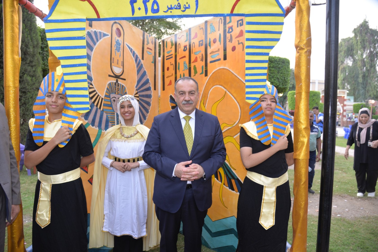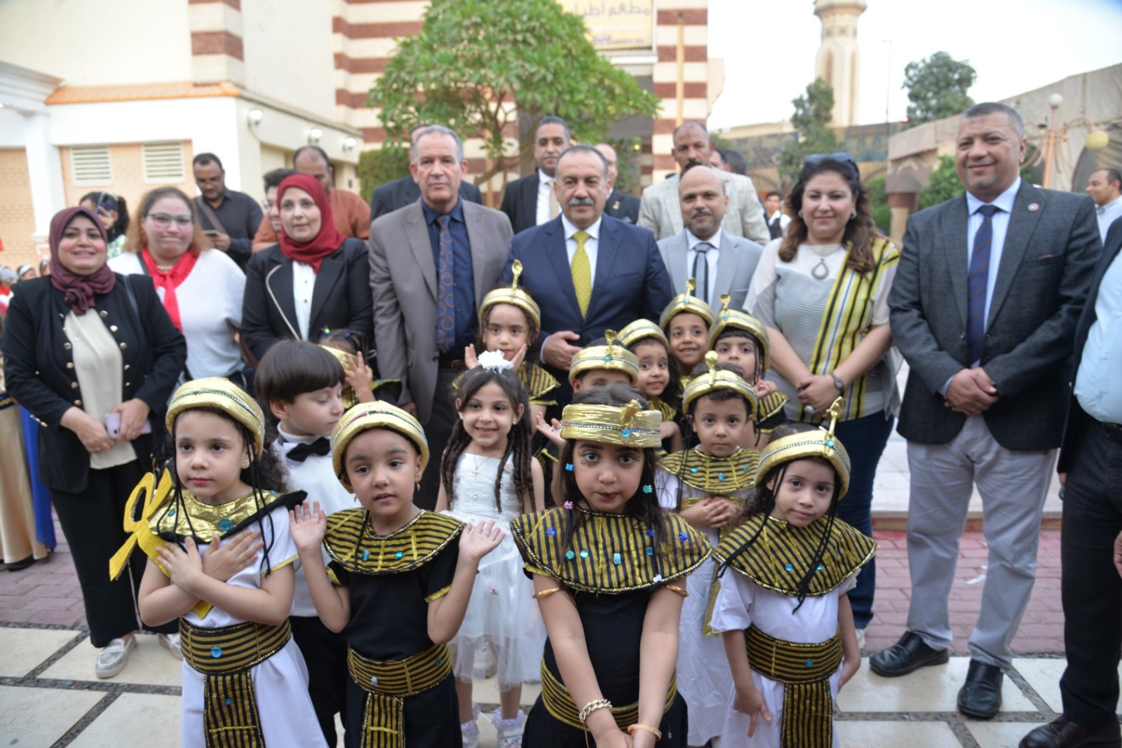 وانطلقت الفعاليات باستقبال المحافظ بطابور عرض فرعوني شارك فيه عشرات الأطفال وطلاب المدارس الحكومية والخاصة، مرتدين الأزياء الفرعونية التي عكست رموز الحضارة المصرية القديمة، مرددين الأغاني الوطنية وسط تصفيق الحضور، في مشهد نابض بالحياة عبّر عن روح الانتماء والفخر بتاريخ مصر المجيد.