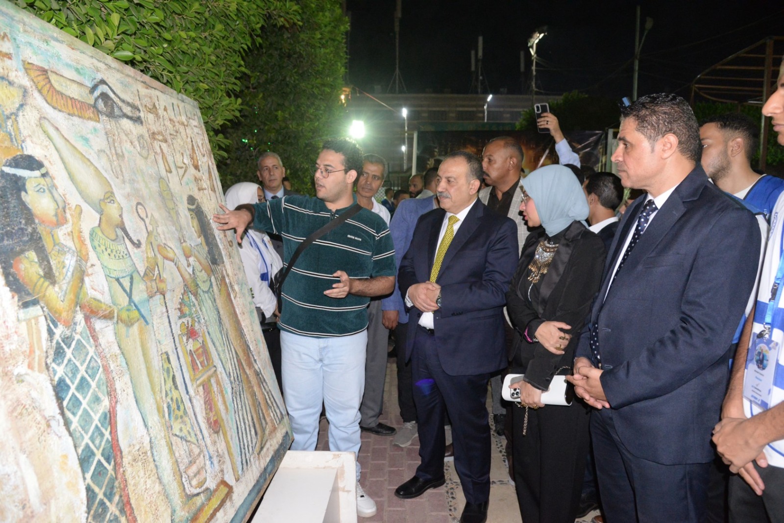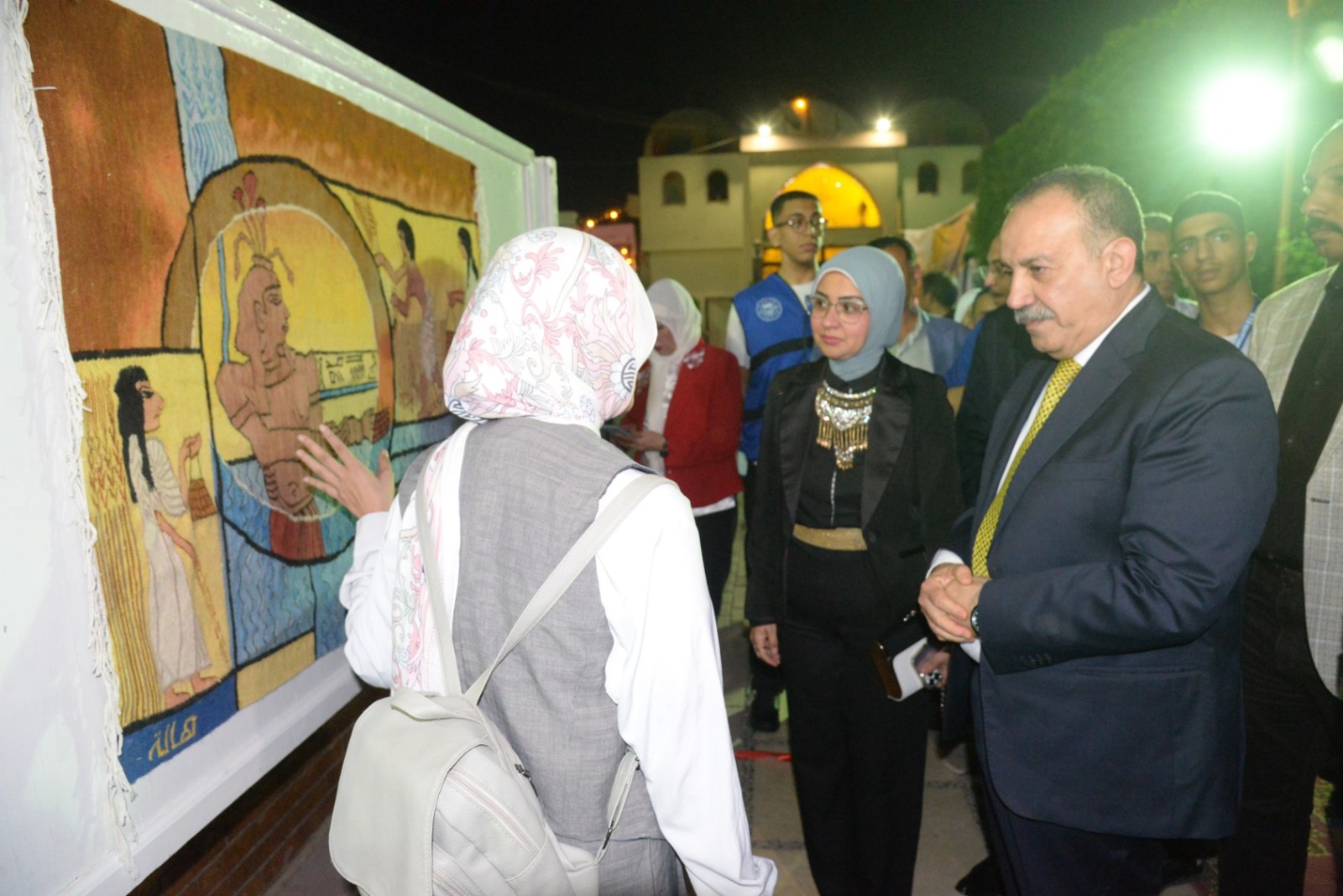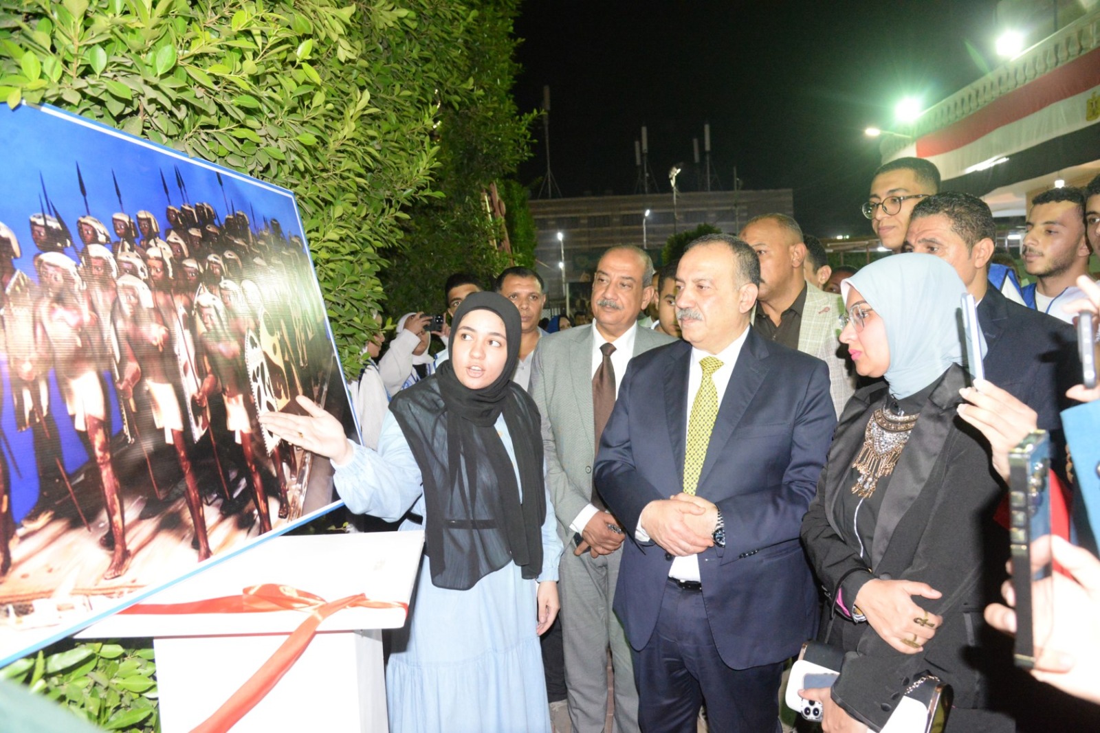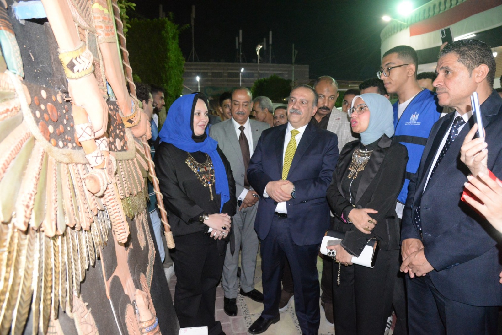 وعلى هامش الاحتفال، افتتح المحافظ معرض "فرعونيات" الذي نظمته كلية التربية النوعية بجامعة أسيوط، وضم مجموعة من اللوحات والمشغولات اليدوية التي استلهمت رموز الحضارة المصرية بأساليب فنية حديثة. وقد أشاد المحافظ بالمستوى الإبداعي المتميز للطلاب وأعضاء هيئة التدريس، مؤكدًا أن تلك الأعمال تعكس وعي الشباب واعتزازهم بجذورهم الحضارية.