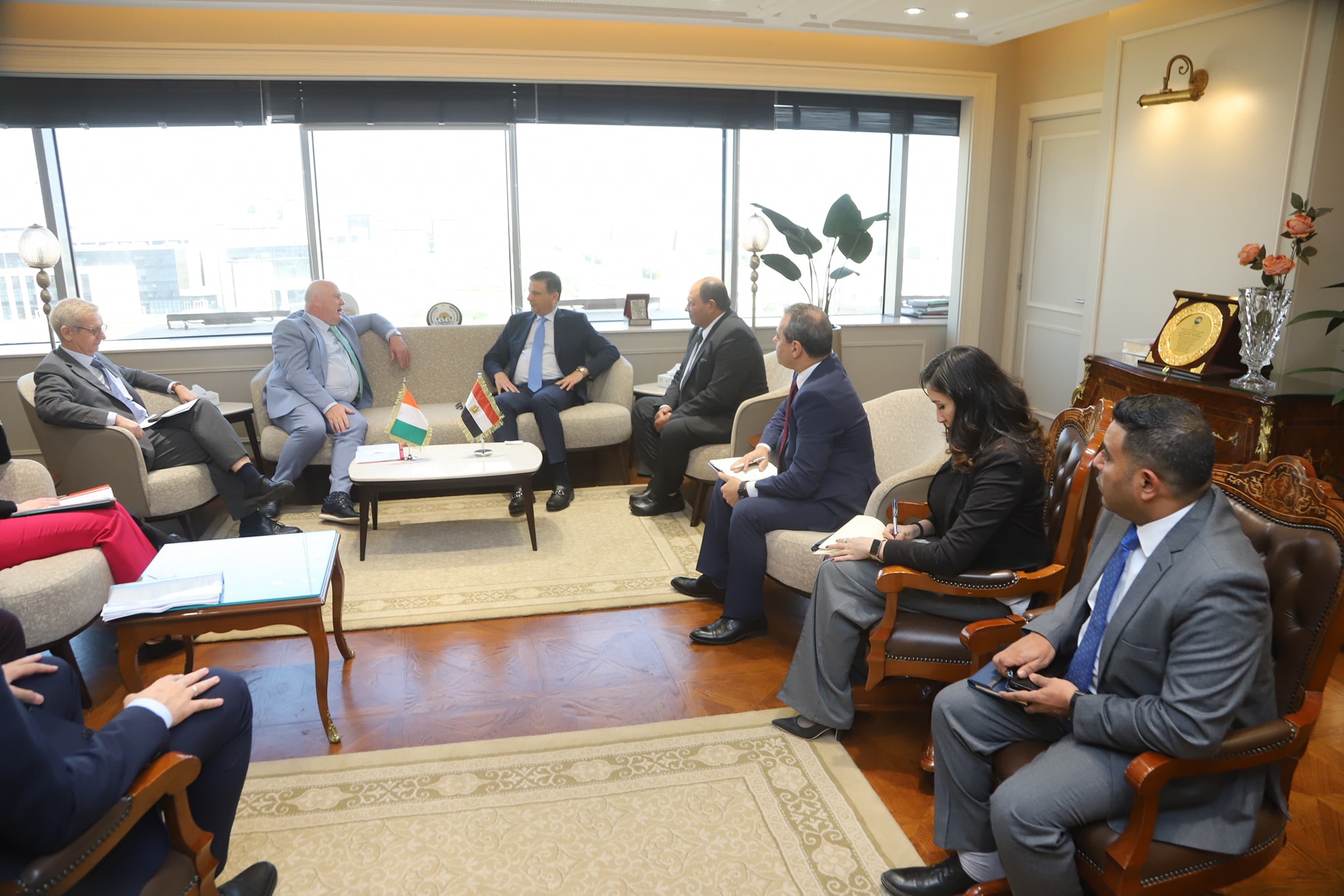 التقى علاء فاروق وزير الزراعة واستصلاح الأراضي، وزير الزراعة واستصلاح الأراضي، ونظيره الأيرلندي، "نويل جريلش"، وزير الدولة للشئون الزراعية والغذاء الايرلندى، وبحضور المهندس مصطفى الصياد نائب وزير الزراعة، وعدد من قيادات الوزارتين من الجانبين لبحث سبل تعزيز وتوسيع آفاق التعاون المشترك بين البلدين في القطاع الزراعي.