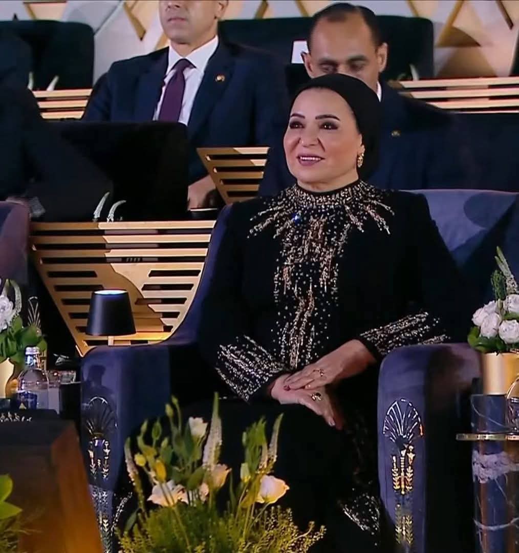 فرعوني بلمسة بورسعيدية .. مصممة أزياء تبدع في فستان السيدة انتصار السيسي بأفتتاح المتحف المصري الكبير