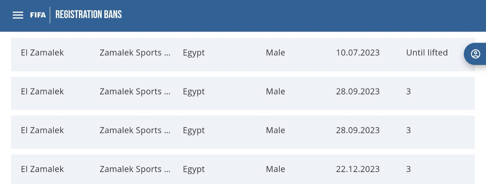 وبحسب ما ورد على موقع فيفا المختص بعقوبات إيقاف القيد للأندية، فقد تم توقيع عقوبة حرمان الزمالك من القيد في ثلاث قضايا جديدة.