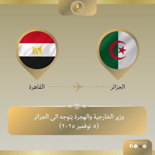 توجه د. بدر عبد العاطي وزير الخارجية والهجرة وشئون المصريين بالخارج، اليوم الأربعاء ٥ نوفمبر ٢٠٢٥، إلى العاصمة الجزائرية، حيث من المقرر أن يجري لقاءات مع عدد من كبار المسؤولين في الحكومة الجزائرية لبحث سبل تعزيز العلاقات الثنائية بين البلدين الشقيقين، إلى جانب تبادل الرؤى بشأن القضايا الإقليمية محل الاهتمام المشترك.