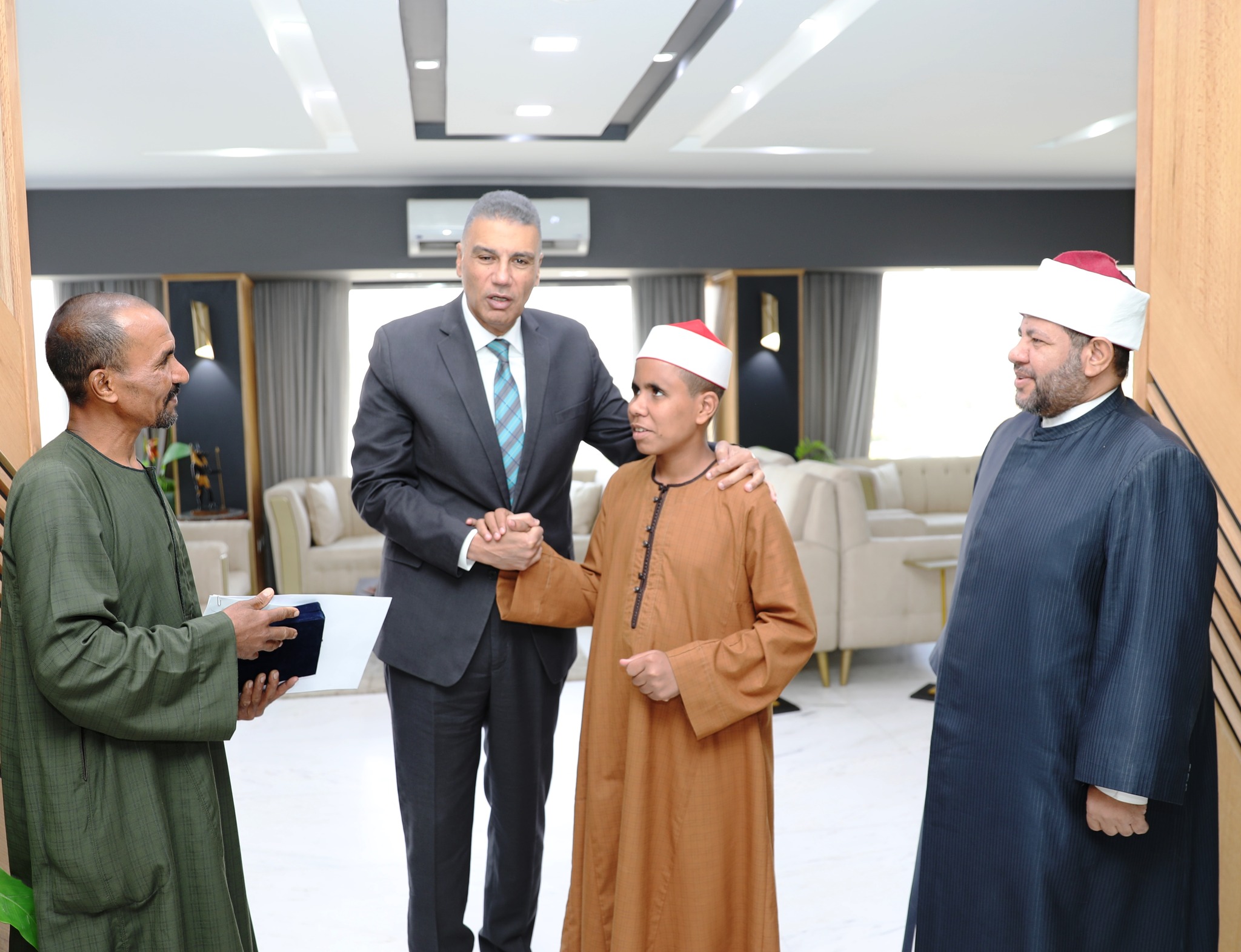 فى لفتة أبوية .. محافظ أسوان يكرم الطالب زياد خميس لحصده المركز الأول فى مسابقة القرآن الكريم