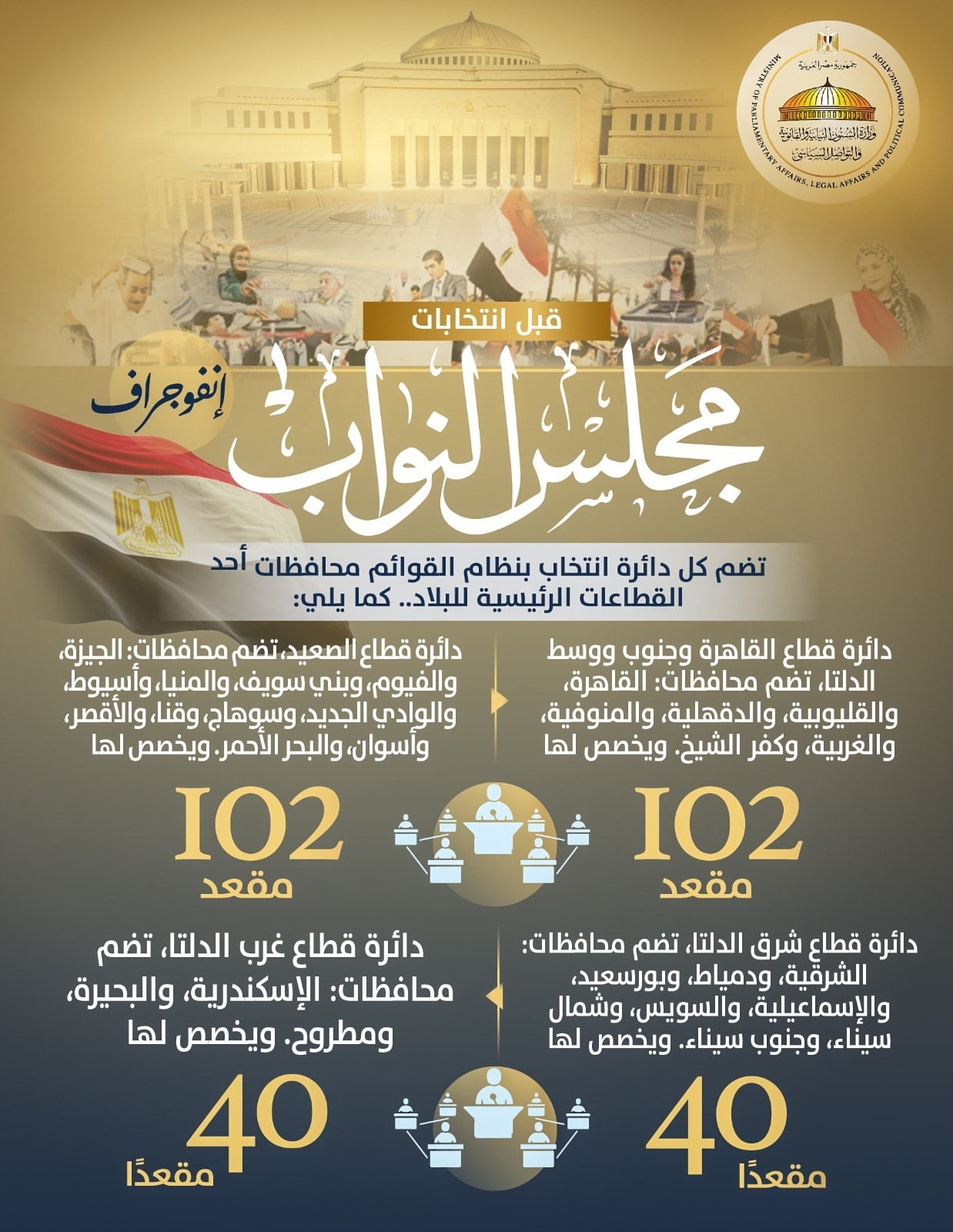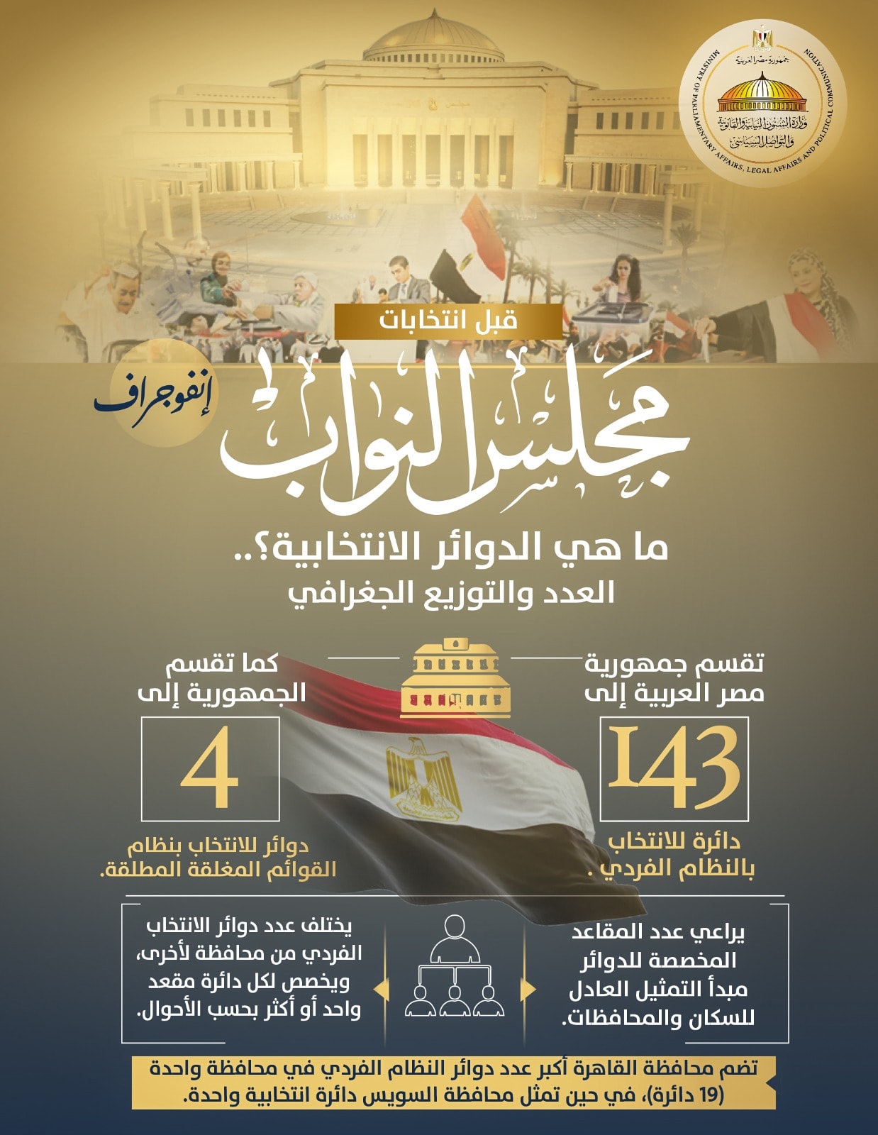 إنفوجرافات وزارة الشؤون النيابية تُبرز توزيع الدوائر الانتخابية وعددها قبل انتخابات مجلس النواب