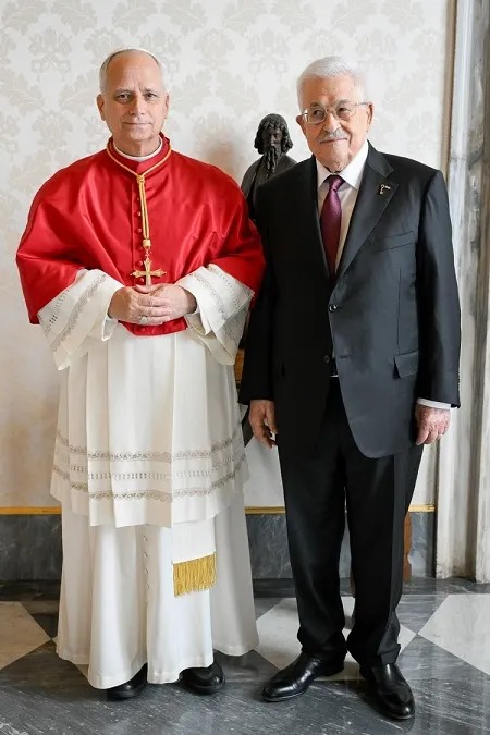 عقد بابا الفاتيكان ليون الرابع عشر، أول اجتماع رسمي له مع الرئيس الفلسطيني محمود عباس، في لقاء وُصف بالتاريخي، حيث شدّد الجانبان على الحاجة الملحّة لإنهاء الحرب وتقديم المساعدات الإنسانية العاجلة لسكان قطاع غزة.