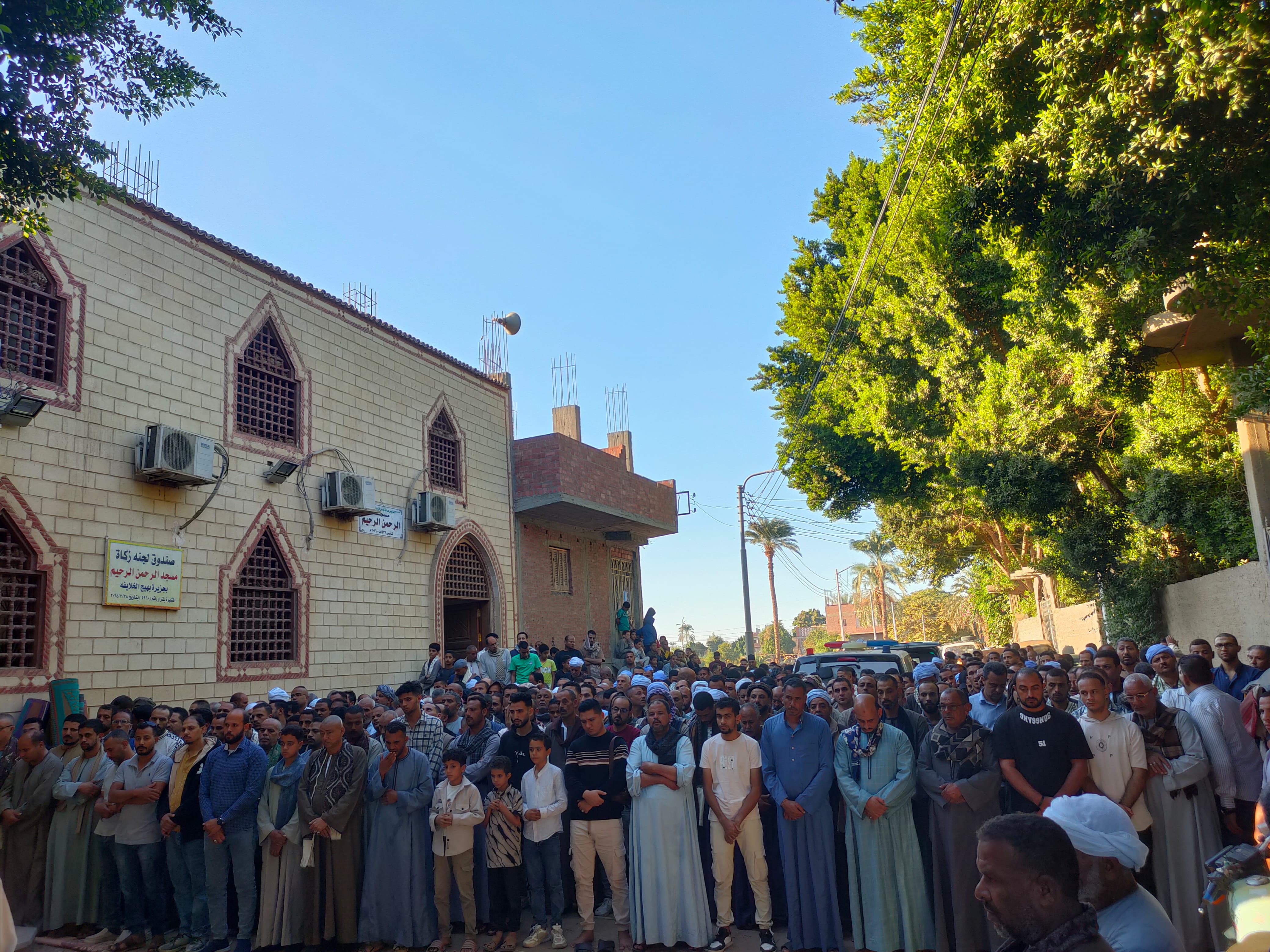 وفي عصر الجمعة، خرجت جنازة مهيبة من قرية جزيرة بهيج الخلايفة بمركز أبنوب، حيث أُديت صلاة الجنازة على الضحايا بمسجد الرحمن الرحيم وسط حالة من الحزن والبكاء، قبل أن يُوارَوا الثرى في مدافن العائلة بمقابر عرب القداديح.