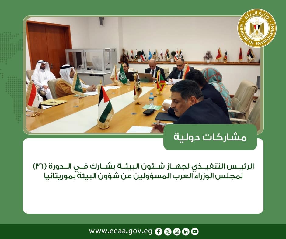 - نيابة عن وزيرة التنمية المحلية والقائم بأعمال وزير البيئة، شارك الدكتور علي أبو سنة، الرئيس التنفيذي لجهاز شؤون البيئة، في أعمال الدورة 36 لمجلس الوزراء العرب المسؤولين عن شؤون البيئة، التي استضافتها العاصمة الموريتانية نواكشوط، بمشاركة وزراء ومسؤولين رفيعي المستوى من الدول العربية، إلى جانب ممثلين عن المنظمات الإقليمية والدولية المعنية، حيث أكد على حرص مصر على تعزيز العمل العربي المشترك في القضايا البيئية والمناخية، ودعم مسيرة التحول نحو الاقتصاد الدائري باعتباره أحد أهم محركات التنمية المستدامة في المنطقة العربية، وأداة فاعلة لتحقيق التوازن بين النمو الاقتصادي وحماية الموارد الطبيعية.