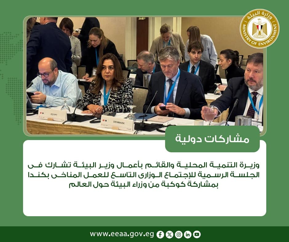- فى إطار مشاركتها فى الإجتماع الوزارى التاسع للعمل المناخى بكندا، وزيرة التنمية المحلية والقائم بأعمال وزير البيئة تشارك فى الجلسة الرسمية للإجتماع الوزارى بمشاركة كوكبة من وزراء البيئة حول العالم، حيث استعرضت جهود مصر لتحقيق مساهماتها المحددة وطنياً للتصدى للآثار السلبية للتغيرات المناخية، مؤكدة أن مصر انتهت من النسخة الأولى من خطة المساهمات المحددة وطنيا الثالثة (NDC3.0).