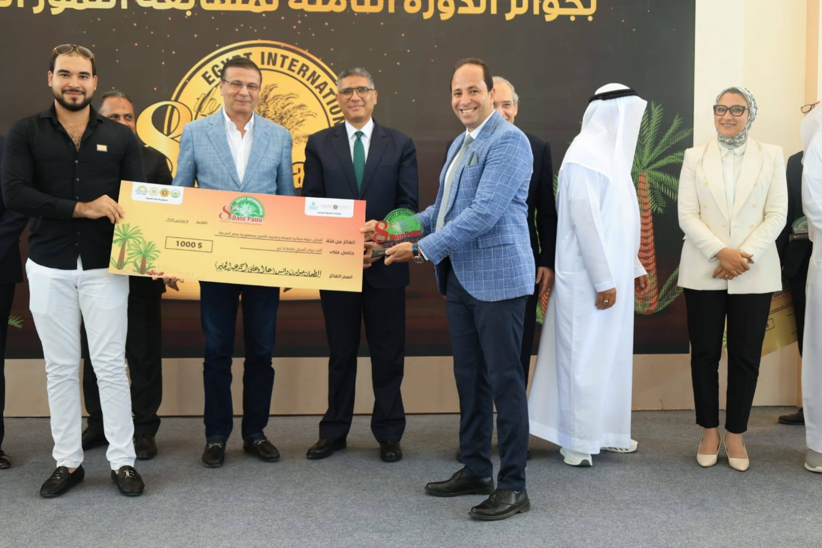 كما قام وزير الزراعة ومحافظ الجيزة ومرافقوهما بتكريم الفائزين بجوائز الدورة الثامنة لمسابقة التمور المصرية، ومنحهم درع محافظة الجيزة تقديرًا لإسهاماتهم المتميزة في تطوير صناعة التمور المصرية.