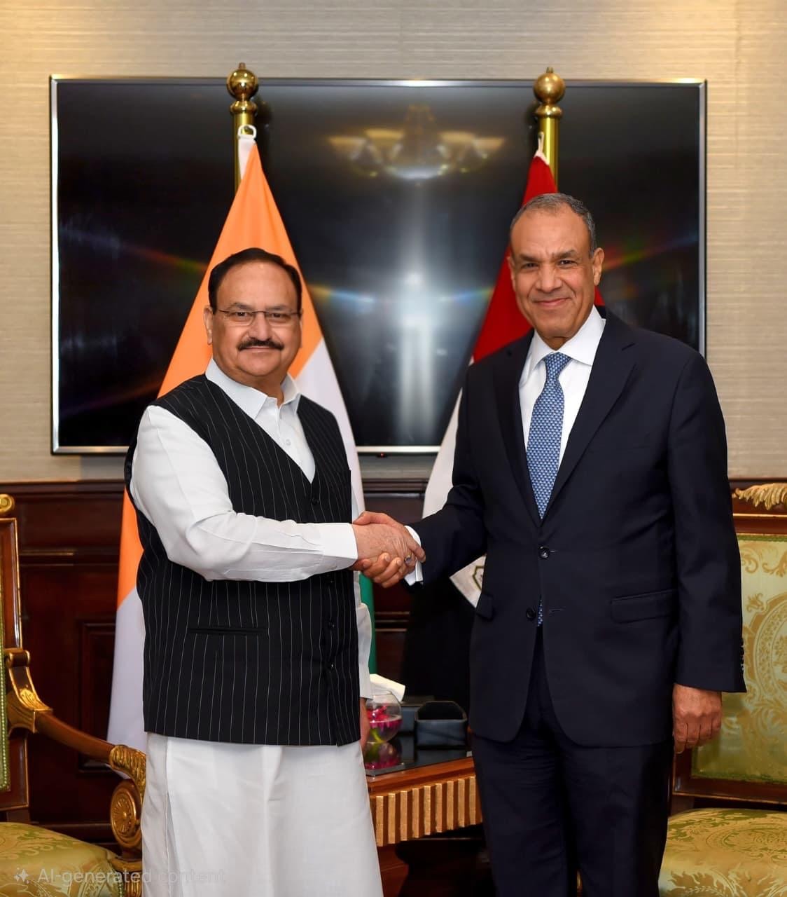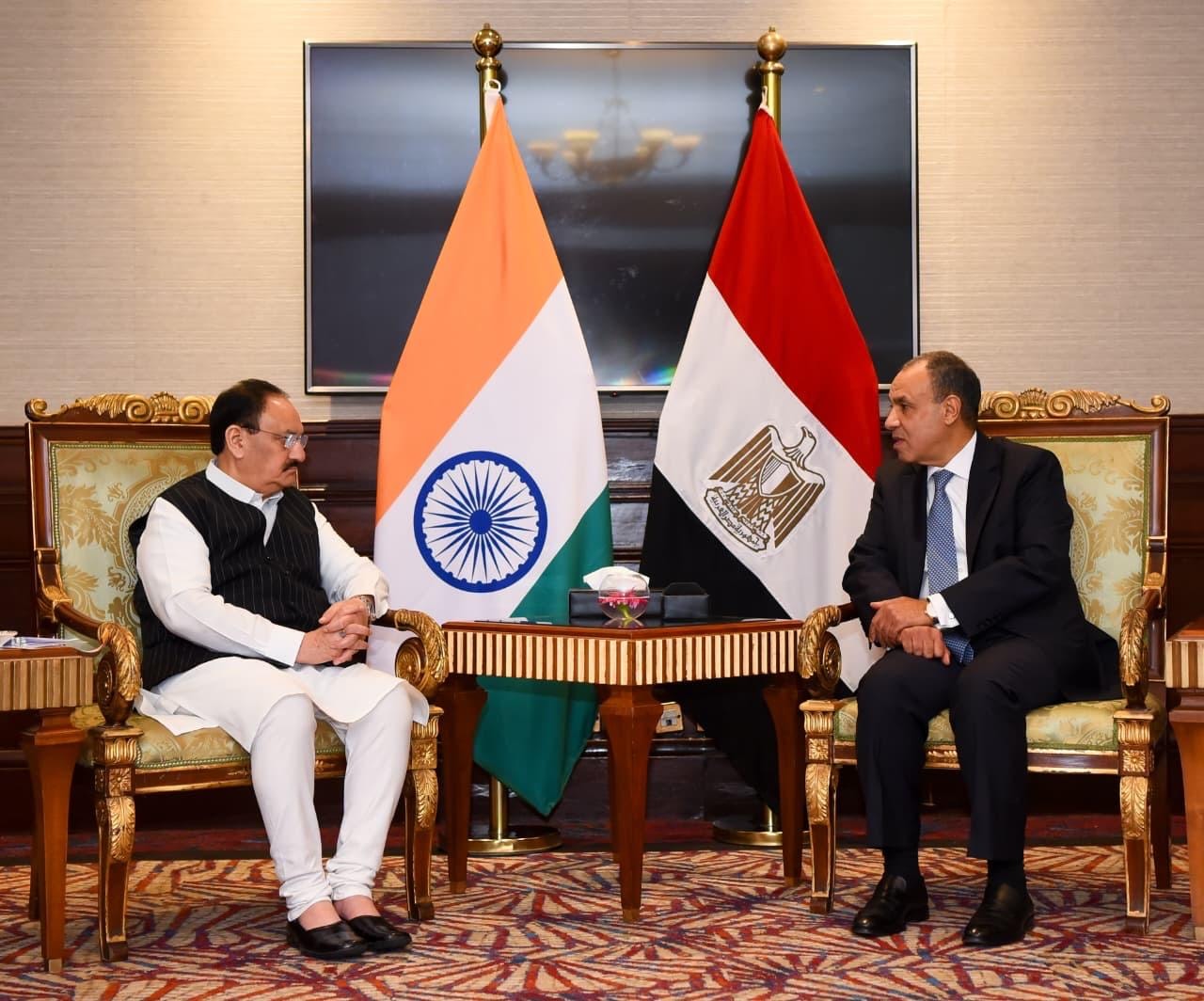 التقى د. بدر عبد العاطي وزير الخارجية والهجرة وشئون المصريين بالخارج يوم الاثنين ١٠ نوفمبر، بالسيد جاغات براكاش نادا وزير الصحة والكيماويات والأسمدة ورئيس حزب بهاراتيا جاناتا الحاكم بالهند، وذلك خلال زيارته إلى القاهرة للمشاركة في النسخة الثالثة من المؤتمر العالمي للسكان والصحة والتنمية البشرية، الذي تنظمه وزارة الصحة والسكان في الفترة من ٩ إلى ١٢ نوفمبر.