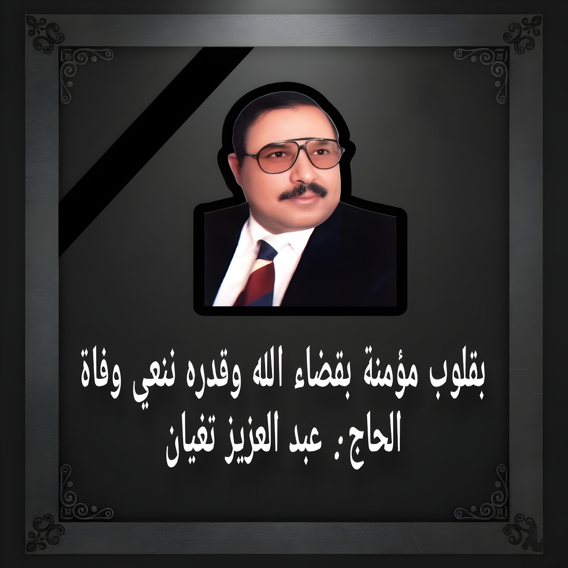 برحيل المهندس الحاج عبدالعزيز تغيان، فقدت ديروط ومحافظة أسيوط أحد رموزها الصادقين في عالم التجارة، ورجلًا جمع بين التقوى والحكمة، بين المِكيال والضمير، بين الطموح والرضا.