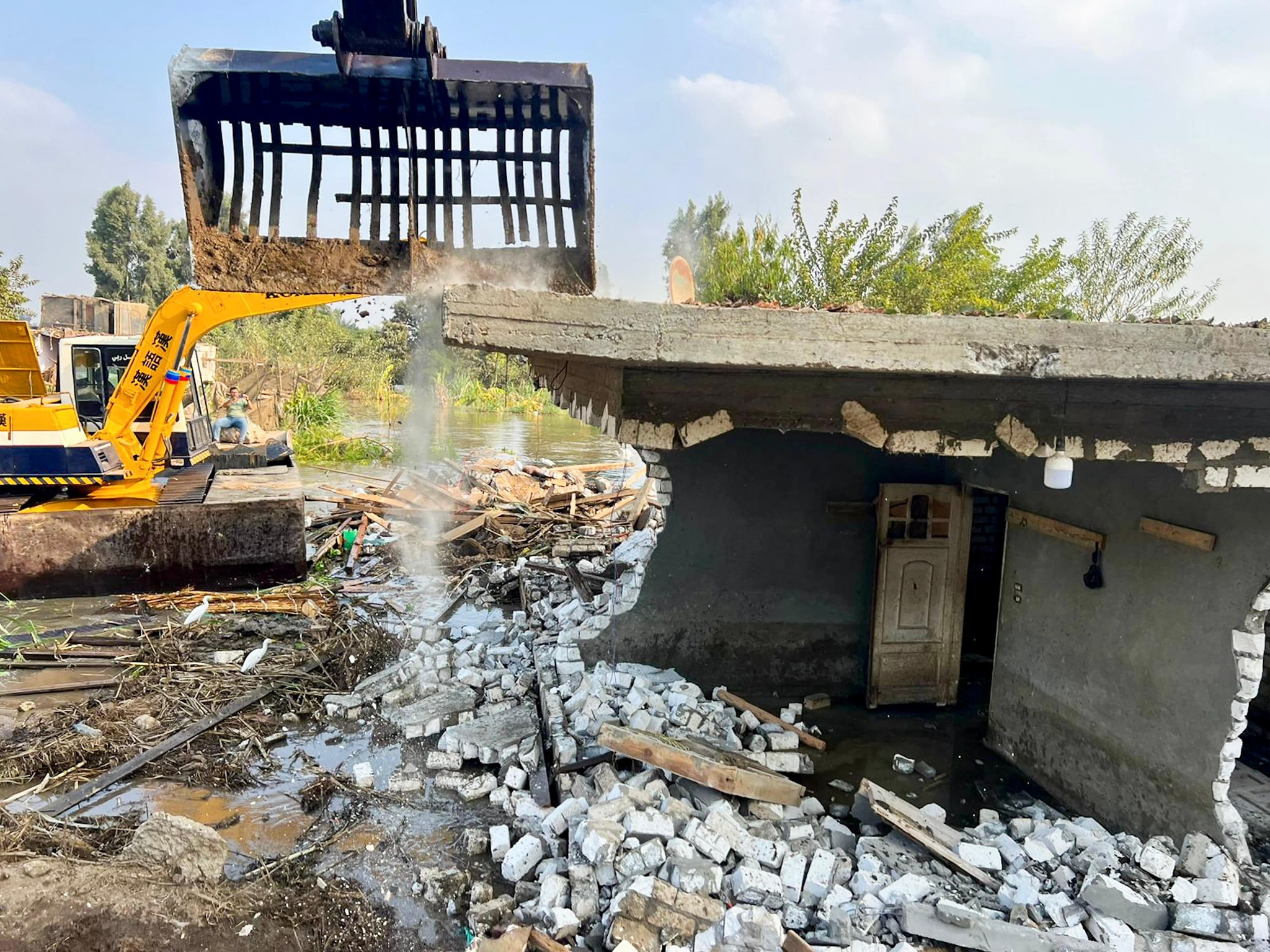 وقد تم يوم ١٠ نوفمبر ٢٠٢٥ تنفيذ إزالات لعدد (٤٥) تعدٍ على فرع رشيد، شملت مباني مخالفة وأعمال ردم داخل المجرى المائي للنهر، وذلك تنفيذًا للإجراءات القانونية الصادرة في حينها تجاه هذه المخالفات، وبالتنسيق مع الجهات المعنية لضمان تنفيذ الإزالات بشكل منظم وآمن .