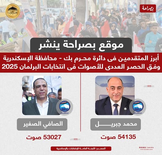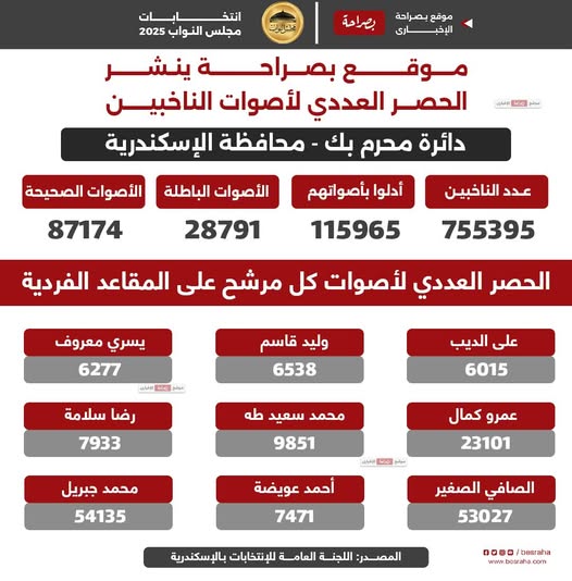 أعلنت اللجنة العامة بدائرة محرم بك بمحافظة الإسكندرية نتائج الحصر العددي لأصوات الناخبين في انتخابات مجلس النواب 2025، والتي أظهرت تقدم مرشحي حزب مستقبل وطن على باقي المنافسين.