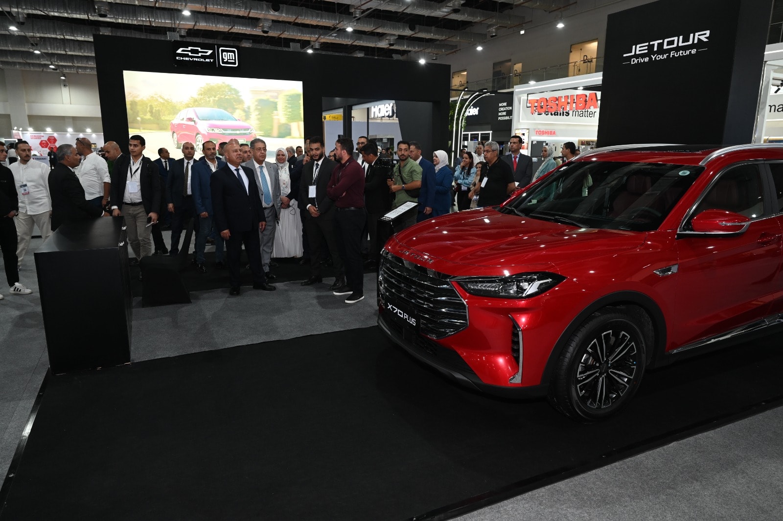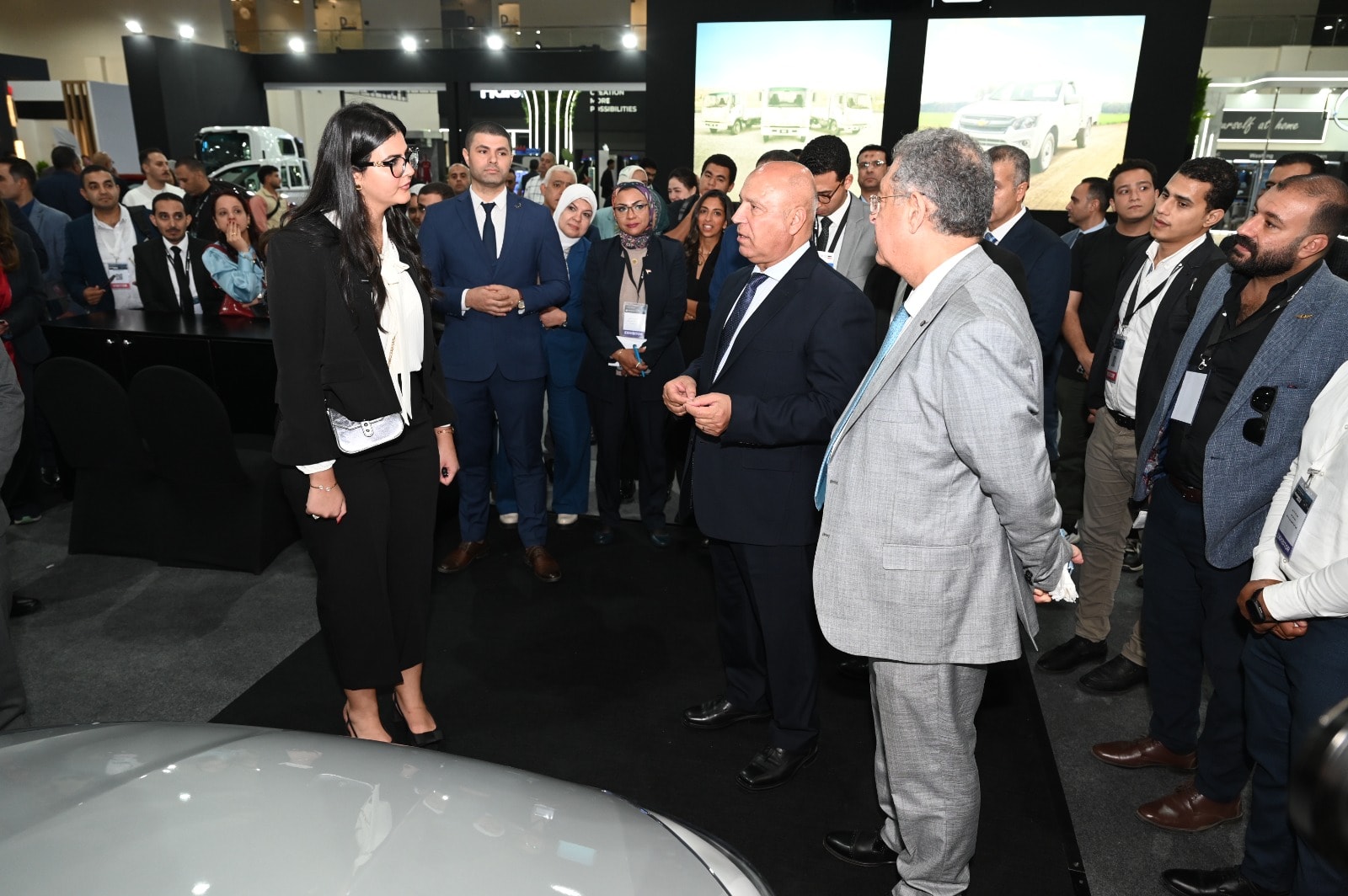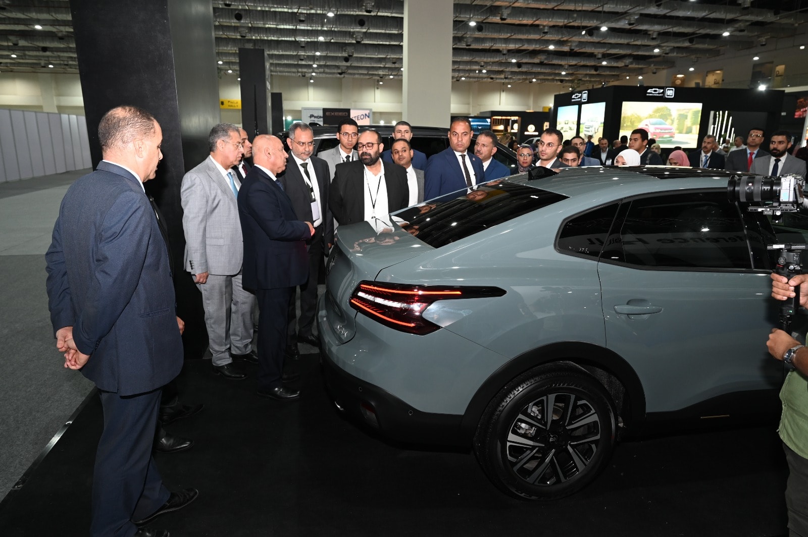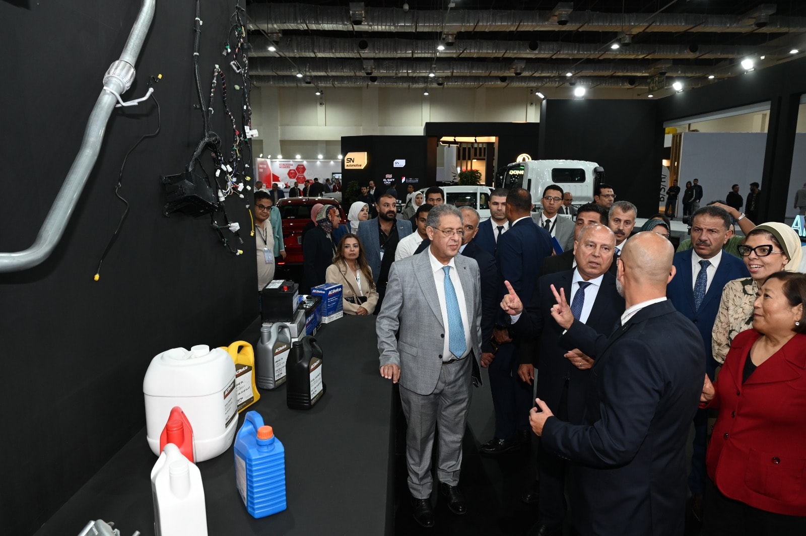 واستهل الوزير جولته بزيارة جناح شركة اس إن أوتوموتيف التي تعرض 3 طرازات من سيارة كهربائية وهجين وسيارة تعمل بالبنزين، ثم تفقد الوزير شركة جنرال موتورز التي تعرض 3 طرازات من سيارات شيفروليه النصف نقل والربع نقل والسيارة الملاكي نيو اوبترا واستمع لشرح من مسؤولي الشركة عن المكونات التي نجحت الشركة في توطينها محلياً والتي ستلبي احتياجات الشركة وباقي الشركات المنتجة للسيارات في مصر، كما تفقد الوزير جناح شركة نيسان لاستعراض الطرازين صني وسنترا.