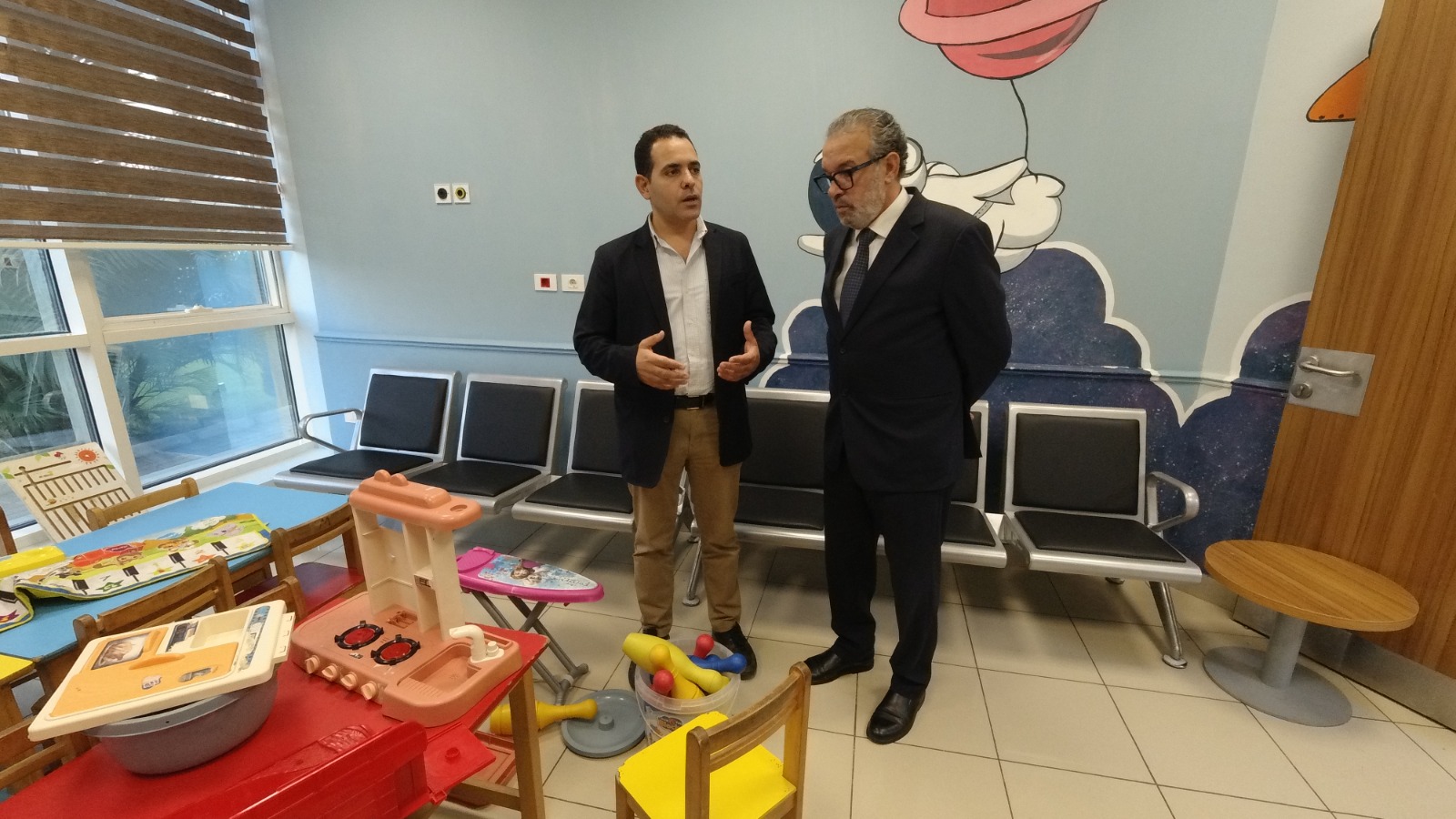 تضمنت زيارة عضو لجنة "إعلام الخدمة العامة"، لمستشفى الناس، جولة تفقد خلالها غرف الأطفال المرضي، وتعرف على الخدمات الطبية المقدمة لهم، كما تفقد خلال جولته جميع أقسام المستشفى بما في ذلك الصيدلية والمطبخ والمغسلة وغيرها من الأقسام التي تتعلق جميعها بتقديم أفضل خدمة ورعاية للأطفال أثناء رحلة علاجهم داخل المستشفى، إضافة إلى هذا اطلع على آلية العمل داخل أقسام الأطفال والقلب والقسطرة والجهاز الهضمي والحروق.