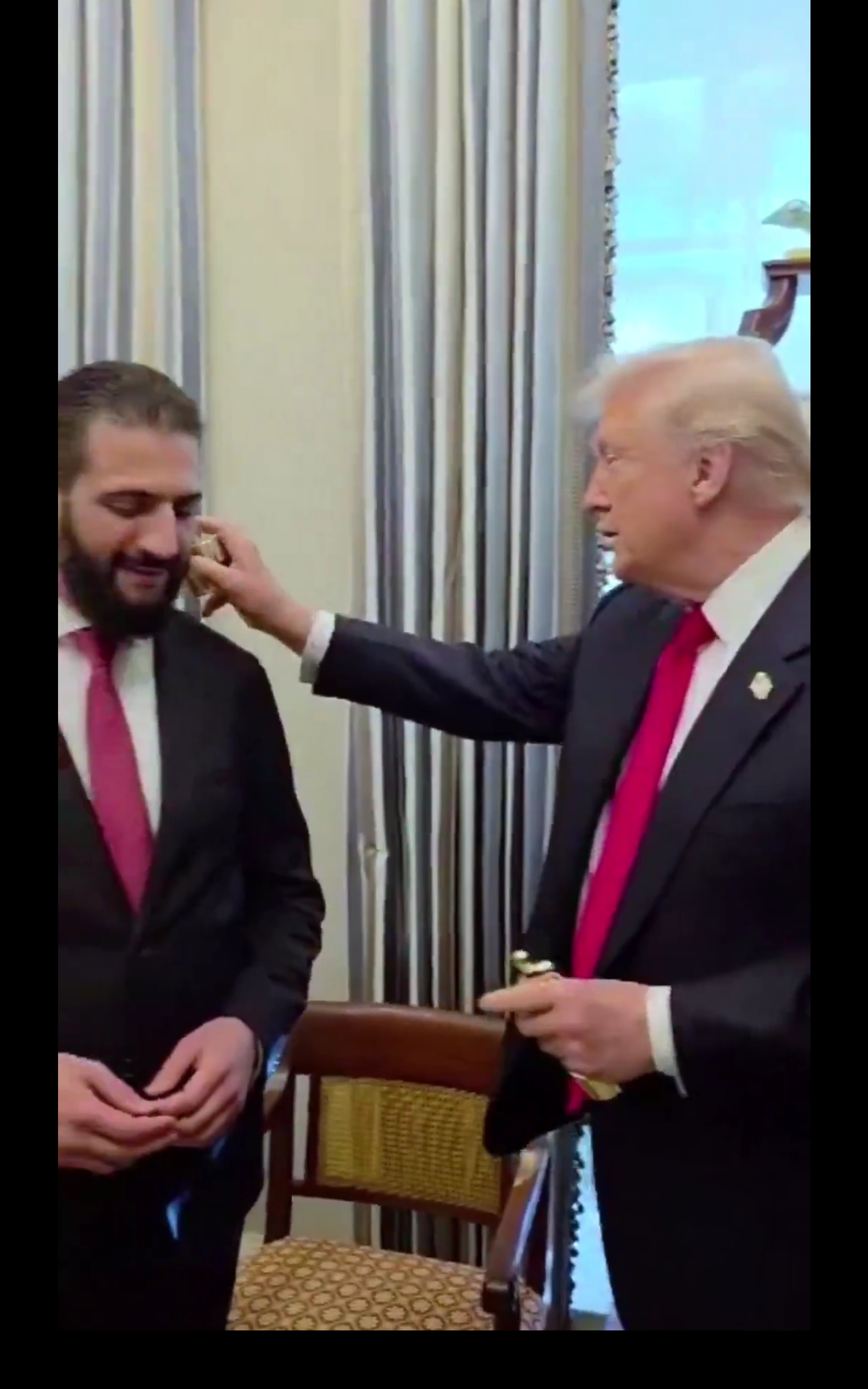 فى لقاء غير تقليدي يعكس أسلوبه المميز، قدم الرئيس الأمريكى دونالد ترامب هدية عطرية لضيفه الرئيس السورى أحمد الشرع، في المكتب البيضاوي وسأله عن عدد وزوجاته لتقديم العطور لهن، وقدم ترامب زجاجتين من العطر واحدة للرئيس الشرع، وأخرى لزوجته — فى لحظة خروج عن البروتوكولات الرسمية، وهي ممارسة اعتاد عليها ترامب في لقاءاته مع شخصيات عالمية، وفي تفاعل مفاجئ وودى، لم يُفوت ترامب الفرصة لطرح سؤال للتندر، سأل فيه الرئيس الشرع: "كم عدد زوجاتك؟" — في إشارة معروفة إلى العادات الثقافية والدينية، ما أثار ضحكات خفيفة في المكتب البيضاوى.