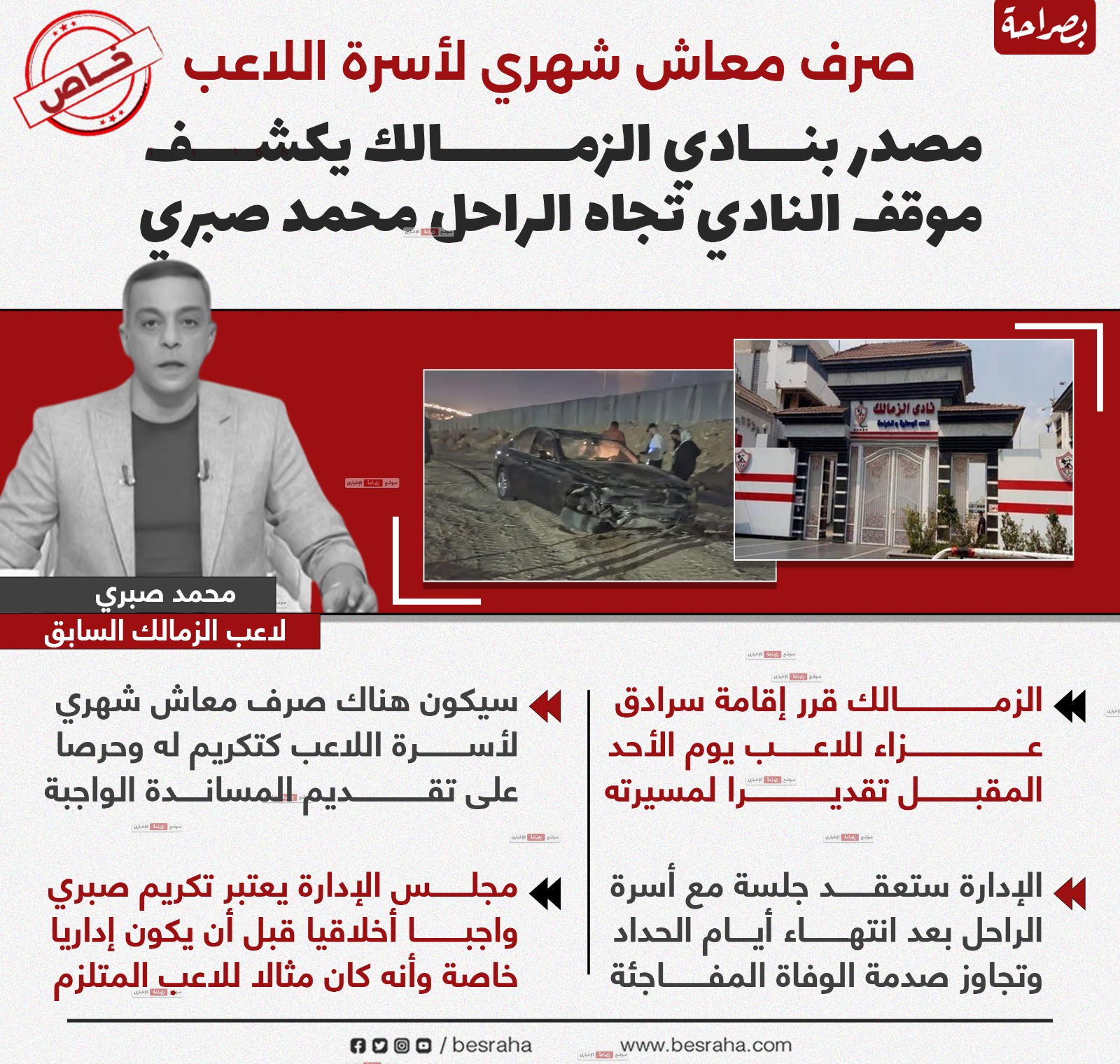 صرف معاش شهري للاعب.. بصراحة يكشف قرارات الزمالك تجاه الراحل محمد صبري