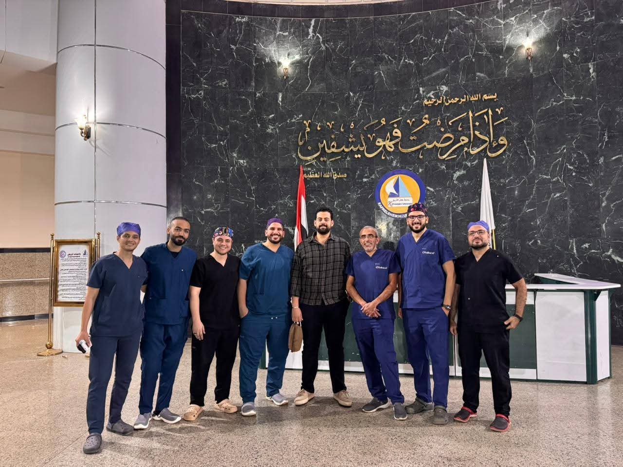 ه قاد الفريق الجراحي، الأستاذ الدكتور إسلام عطا، رئيس قسم جراحة الأوعية الدمويه و الدكتور محمد مصدق زايد مدرس جراحة الأوعية الدمويه والدكتور أحمد عبد الله فوده ومعاذ كمال، ومحمد جهيد، ومهاب سعيد، وسامر حمدي، وعبد الرحمن الرفاعي، وعزت طولان من قسم جراحة الأوعيه الدمويه، وبمجهود بالاضافه الي طاقم التمريض