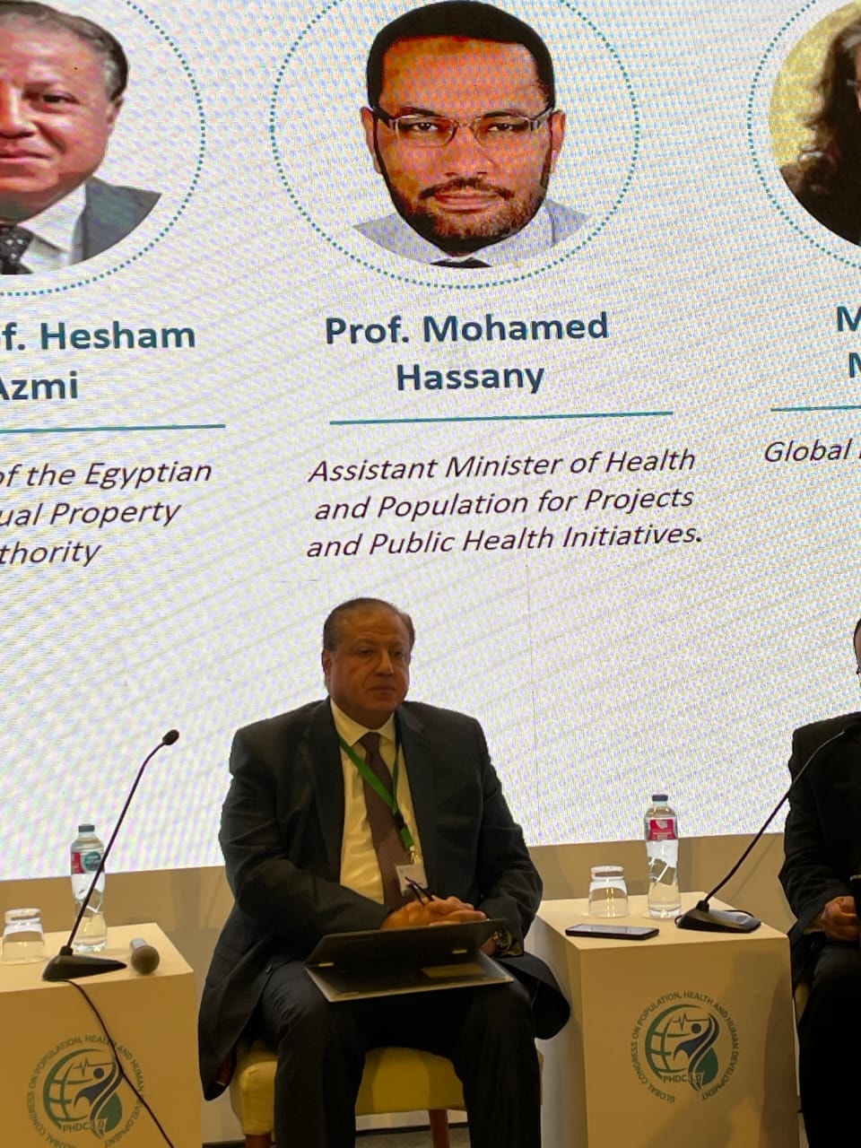 شارك الأستاذ الدكتور هشام عزمي، رئيس الجهاز المصري للملكية الفكرية (EGIPA)، في جلسة رفيعة المستوى ضمن فعاليات المؤتمر العالمي للسكان والصحة والتنمية البشرية PHDC 2025، والتي جاءت تحت عنوان: "إطلاق مستقبل الابتكار في مصر: قوة الملكية الفكرية في الرعاية الصحية وما بعدها"، بمشاركة كبار صناع القرار الوطنيين والخبراء الدوليين في الصحة والابتكار والسياسات العامة.