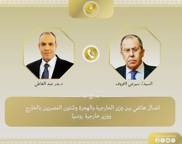 جرى اتصال هاتفي، يوم الاحد ١٦ نوفمبر ٢٠٢٥، بين د. بدر عبد العاطي وزير الخارجية والهجرة وشئون المصريين بالخارج، والسيد سيرجي لافروف وزير خارجية روسيا الاتحادية، وذلك في إطار التشاور المستمر بين البلدين حول العلاقات الثنائية والقضايا الإقليمية والدولية ذات الاهتمام المشترك.