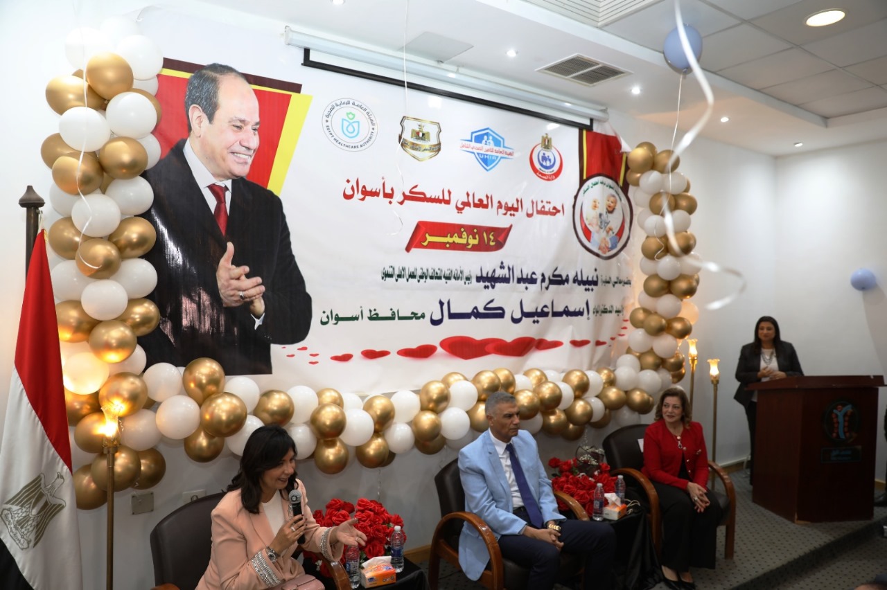 شهد اللواء دكتور إسماعيل كمال محافظ أسوان فعاليات الإحتفال باليوم العالمى لمرضى السكرى ، والذى نظمته جمعية أسوان لرعاية أطفال السكر بالمركز الثقافى الإفريقى ( متحف النيل الوثائقى سابقاً ) ، بحضور السفيرة نبيلة مكرم المدير التنفيذى للتحالف الوطنى للعمل الأهلى التنموى ، والدكتورة بهجة البدرى رئيس الجمعية ، والمهندسة إيرين فايز مدير عام المركز .