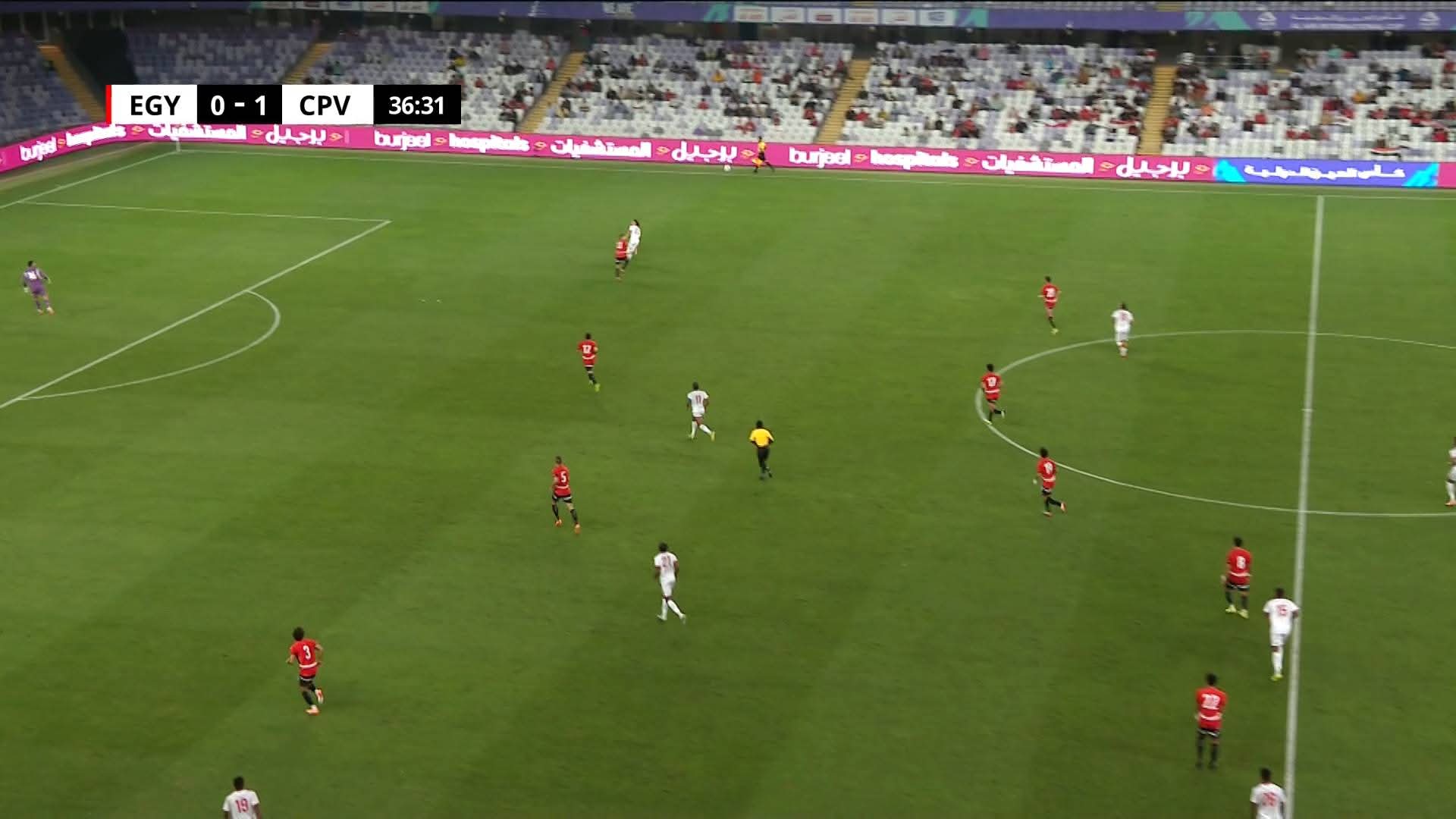 كما حاول المنتخب التسجيل عن طريق الضربات الثابتة، ففي الدقيقة 31 ،سدد عمر مرموش مهاجم مانشيستر سيتي ضربة حرة مباشرة من على حدود منطقة جزاء الرأس الأخضر ،ولكن تصدى لها حارس كاب فيردي ببراعة