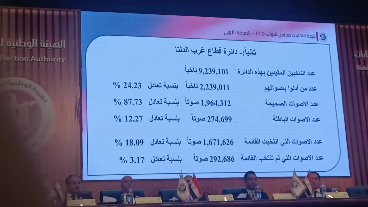 أعلن القاضي حازم بدوى رئيس الهيئة الوطنية للانتخابات، خلال مؤتمر إعلان النتيجة الرسمية للمرحلة الأولى من انتخابات مجلس النواب عن فوز القائمة الوطنية من أجل مصر في دائرة قطاع غرب الدلتا.