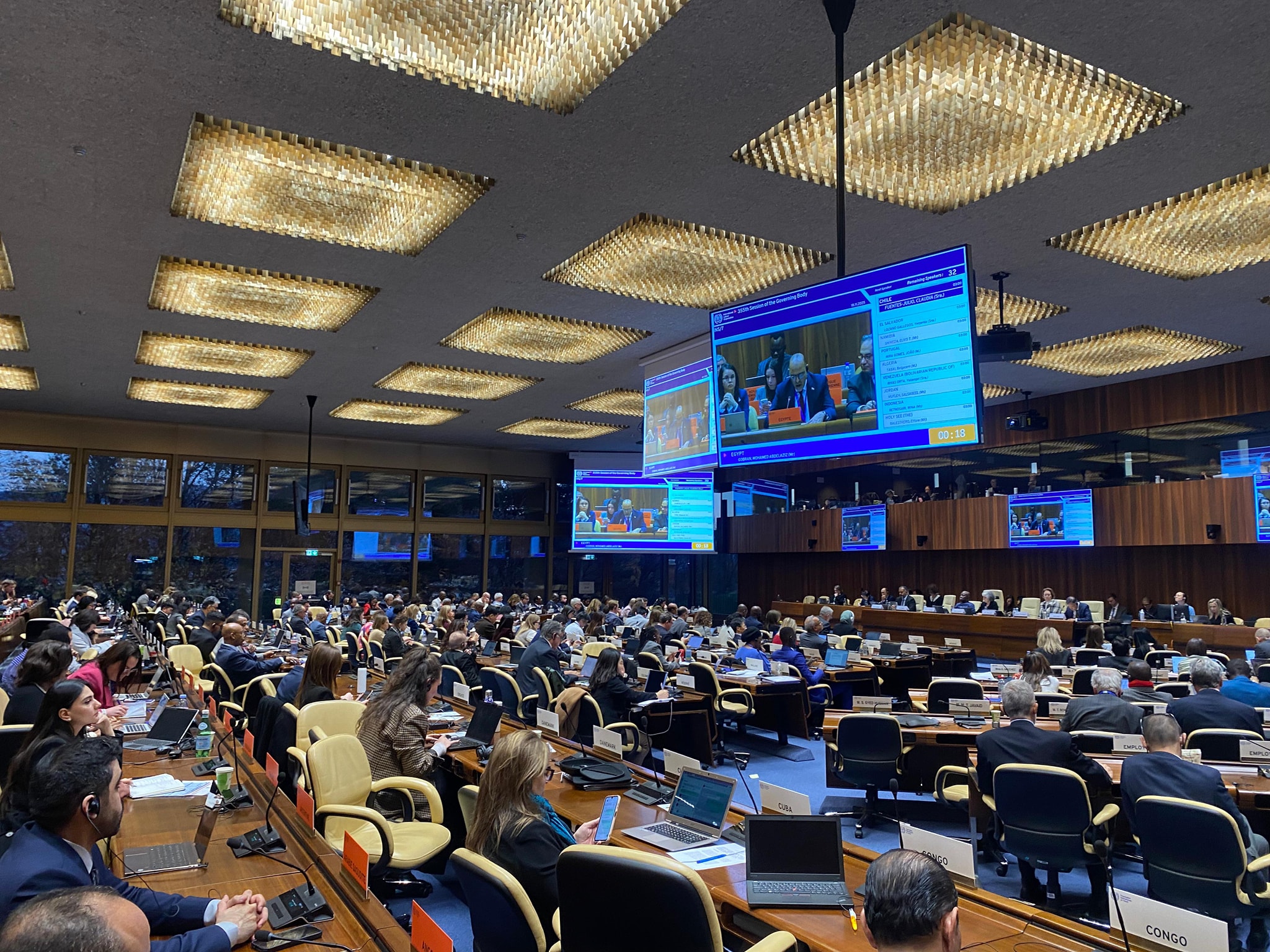 في كلمته أمام مجلس إدارة منظمة العمل الدولية بجنيف: