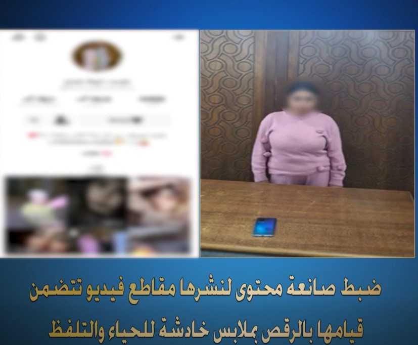 قامت الإدارة العامة لحماية الآداب بقطاع الشرطة المتخصصة برصد قيام صانعة محتوى بنشر مقاطع فيديو على صفحتها الشخصية.