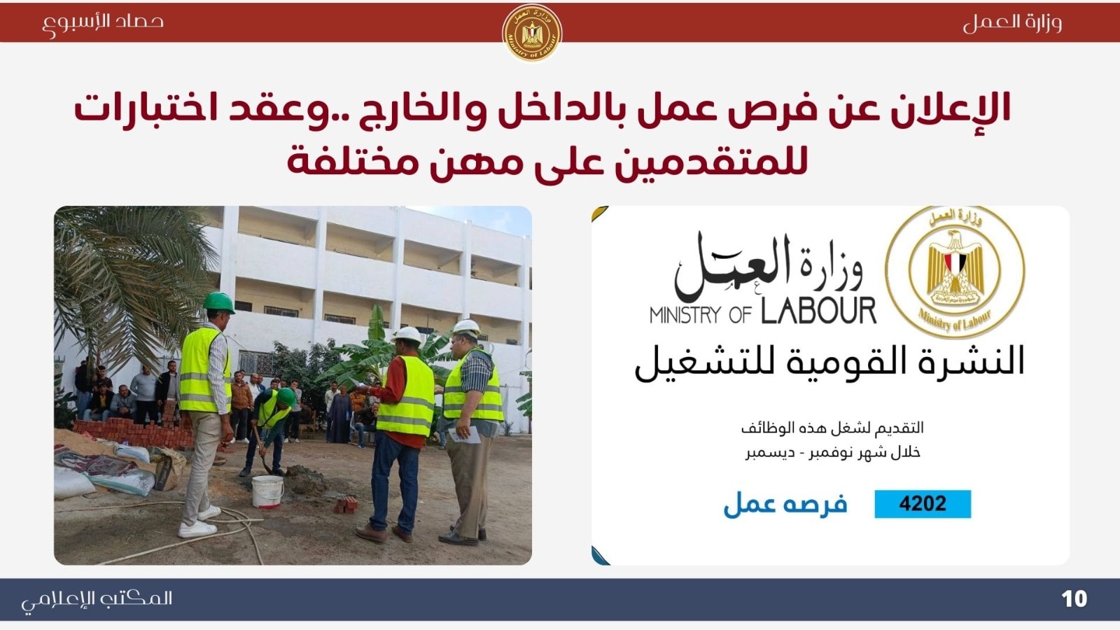 وفي الختام تؤكد وزارة العمل استمرارها في تنفيذ استراتيجية الدولة لبناء سوق عمل مستقر، وتعزيز الحوار الاجتماعي، وحماية حقوق العمال، وتوفير فرص العمل اللائق، بما يحقق التنمية المستدامة ورؤية مصر المستقبلية.