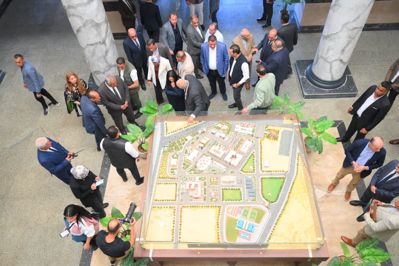 وأطلعها اللواء محمد الزملوط محافظ الوادي الجديد على مكونات المبني، الذي يضم ديوان المحافظة، مبنى المديريات، ومبنى التعامل مع الجمهور، ومبنى جهات حكومية متعددة، ومبنى إداريا لديوان عام المحافظة، ومولا تجاريا، ومبنى صندوق استصلاح الأراضي، ومحطة طاقة شمسية، ومحطة معالجة صرف صحي، ومحطة تنقية مياه شرب، وبئر مياه شرب، وصالة متعددة الأغراض، ومسرح، وخيمة بدوية VIP كبار زوار، وملاعب رياضية، ونقطة مطافي، ونقطة إسعاف، وخزانات حريق، وبوابات وأسوار المجمع، بالإضافة لأعمال شبكات المرافق؛ وشبكات صرف صحي، وشبكات مياه الشرب، وكابلات كهرباء المباني والطاقة، والطرق.