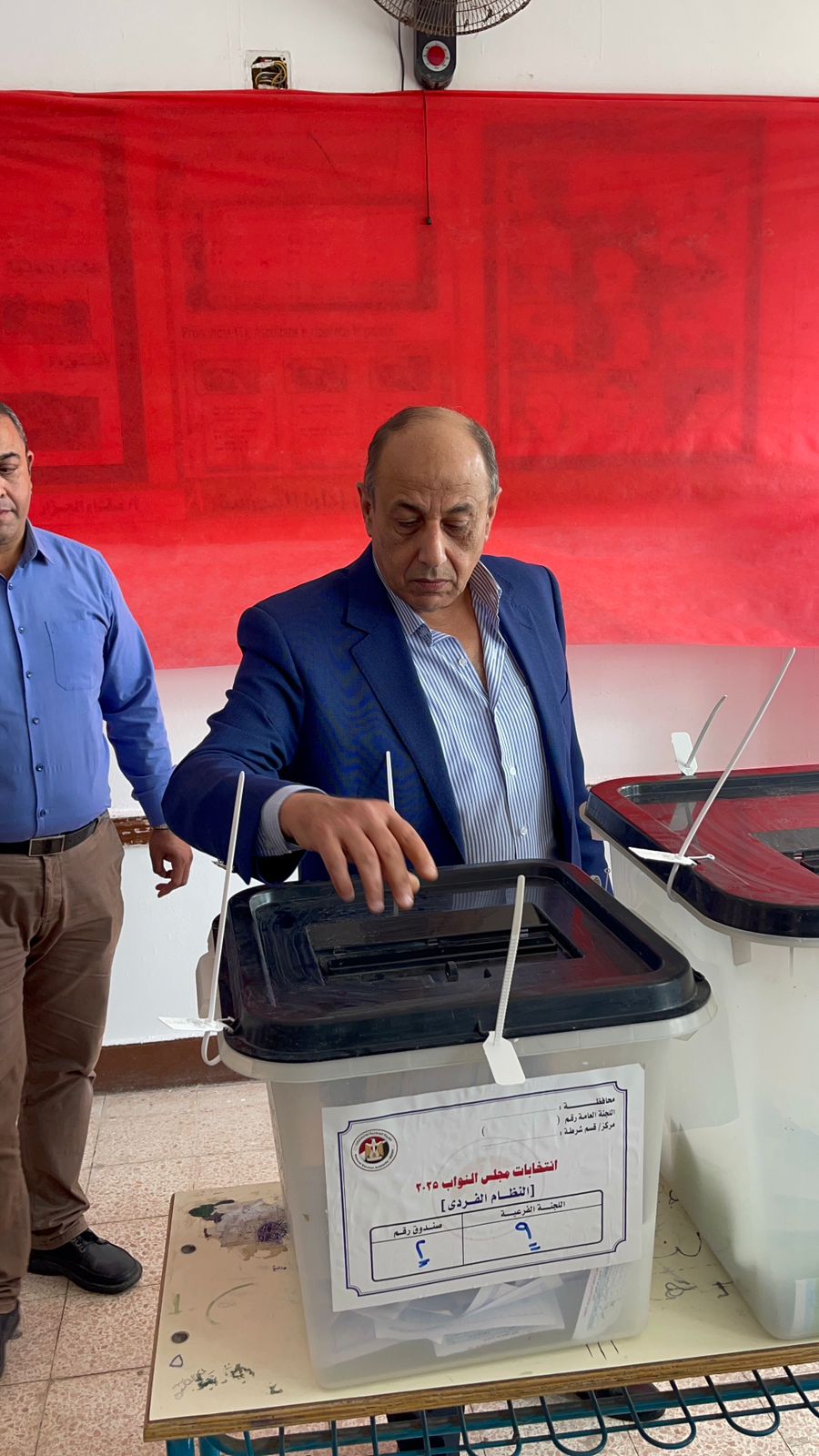 أدلى محمد عباس حلمي، رئيس حزب حماة وطن بصوته في المرحلة الثانية بانتخابات مجلس النواب 2025 في إحدى اللجان الانتخابية.