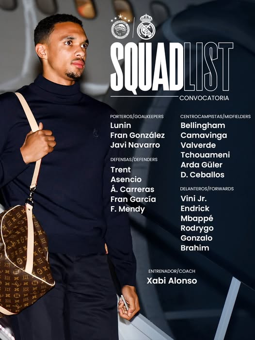 ويدخل الفريق الملكي المواجهة وسط عدة غيابات بارزة، أبرزها غياب الحارس البلجيكي تيبو كورتوا بسبب التهاب في المعدة. كما يفتقد خط الدفاع أربعة لاعبين: دين هويسين، أنطونيو روديجر، ديفيد ألابا، وإيدير ميليتاو.