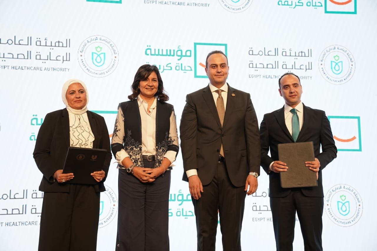 كما وقّع بروتوكول التعاون مع مؤسسة "حياة كريمة" كل من الدكتورة مروة فخري حجازي، المدير التنفيذي للمؤسسة، والدكتور أمير التلواني عن الهيئة، ويشمل التعاون تحسين أوجه خدمات الرعاية العلاجية بالتنسيق مع منظمات المجتمع المدني والجهات الحكومية وغير الحكومية ذات الصلة، إلى جانب التعاون على مستوى الأقسام الطبية والحالات الجراحية بالمستشفيات التابعة للهيئة، وكذلك التعاون مع الجهات الأكاديمية.