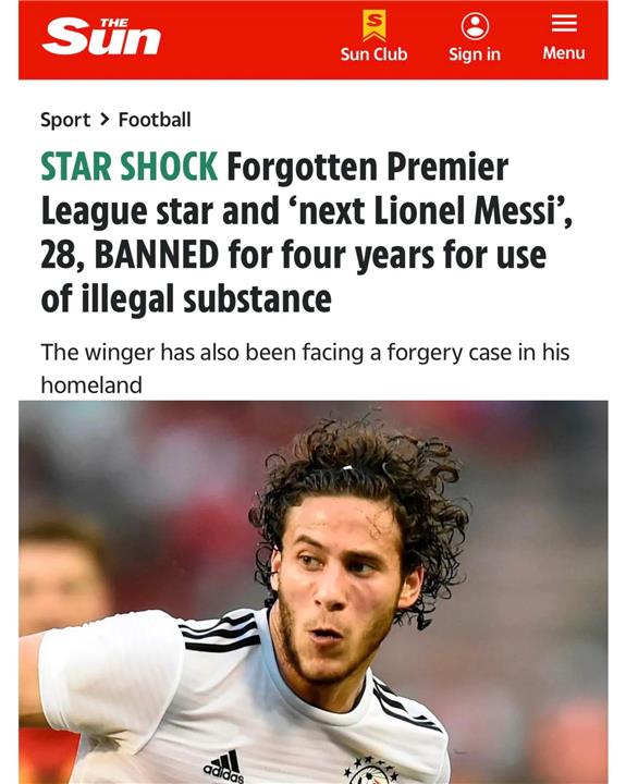 وذكرت صحيفة "ذا صن" البريطانية أن لاعب الدوري الإنجليزي الممتاز السابق تم إيقافه لمدة أربع سنوات عقب ثبوت انتهاكه لقواعد مكافحة المنشطات، مشيرة إلى أن الدولي المصري البالغ من العمر 28 عاماً فشل في اختبار منشطات جرى في مارس 2024.