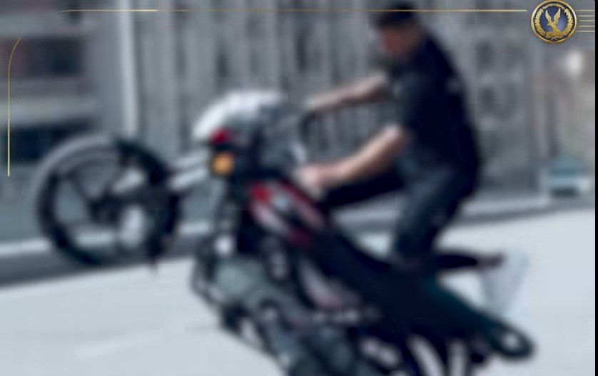 فى إطار كشف ملابسات مقطع فيديو تم تداوله بمواقع التواصل الإجتماعى تضمن قيام قائد دراجة نارية بآداء حركات إستعراضية معرضاً حياته والمواطنين للخطر بالجيزة.
