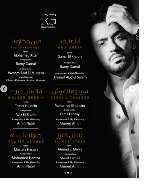 جدير بالذكر أن أخر أغاني رامي جمال هي أغنية "مالها الدنيا" التي سبق طرحها أكتوبر الماضي، والأغنية من كلمات أيمن عز، وألحان محمود أنور، وتوزيع ومكس ماستر محمد ياسر.