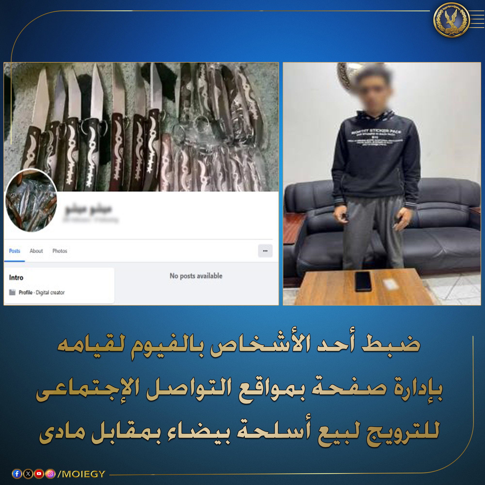 "القبض على شخص يروج لنشاطه الإجرامي عبر مواقع التواصل الاجتماعي من خلال بيع أسلحة بيضاء بمقابل مادي