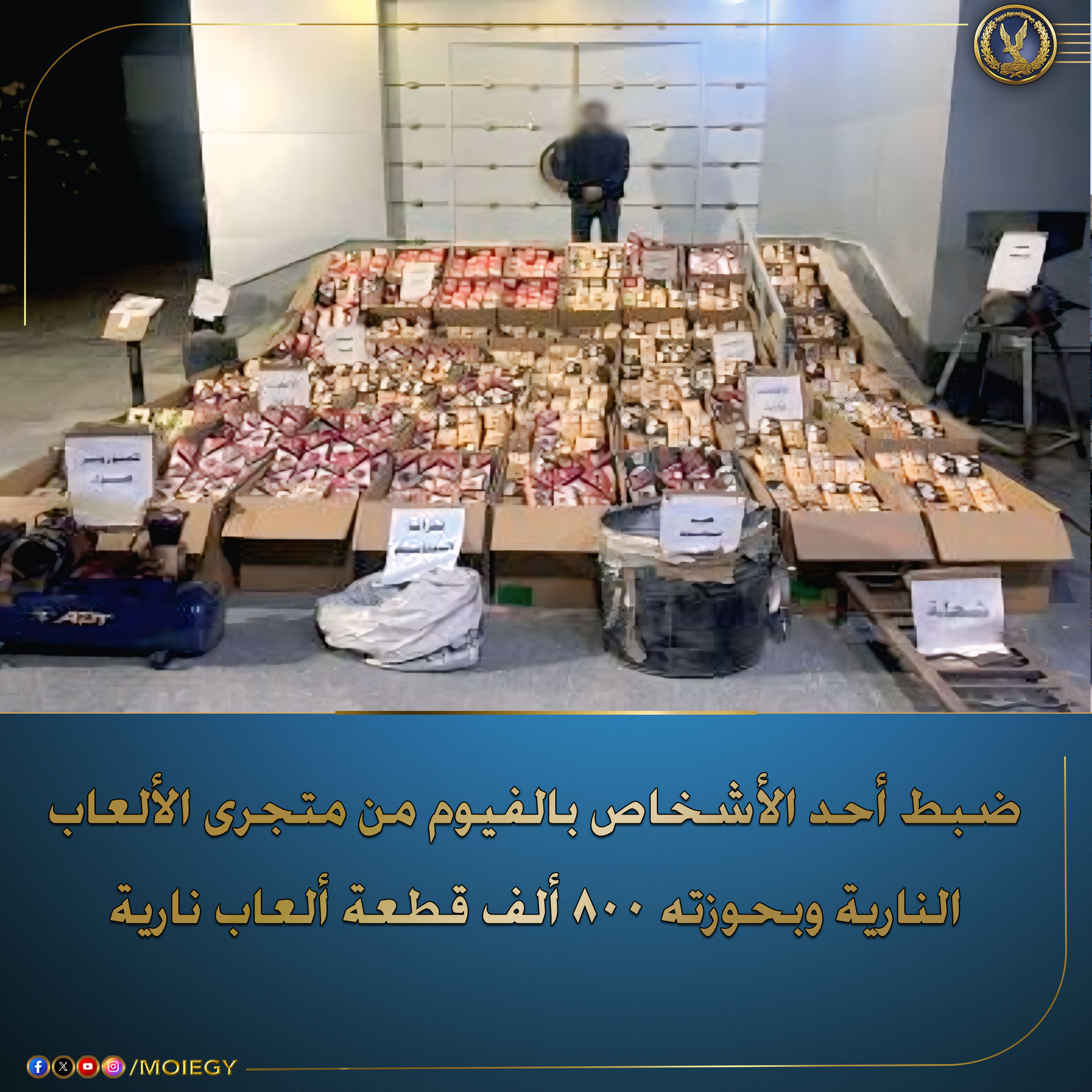 800 ألف قطعة من الألعاب النارية.. ضبط شخص يروّج لبيع الألعاب النارية بمحافظة الفيوم