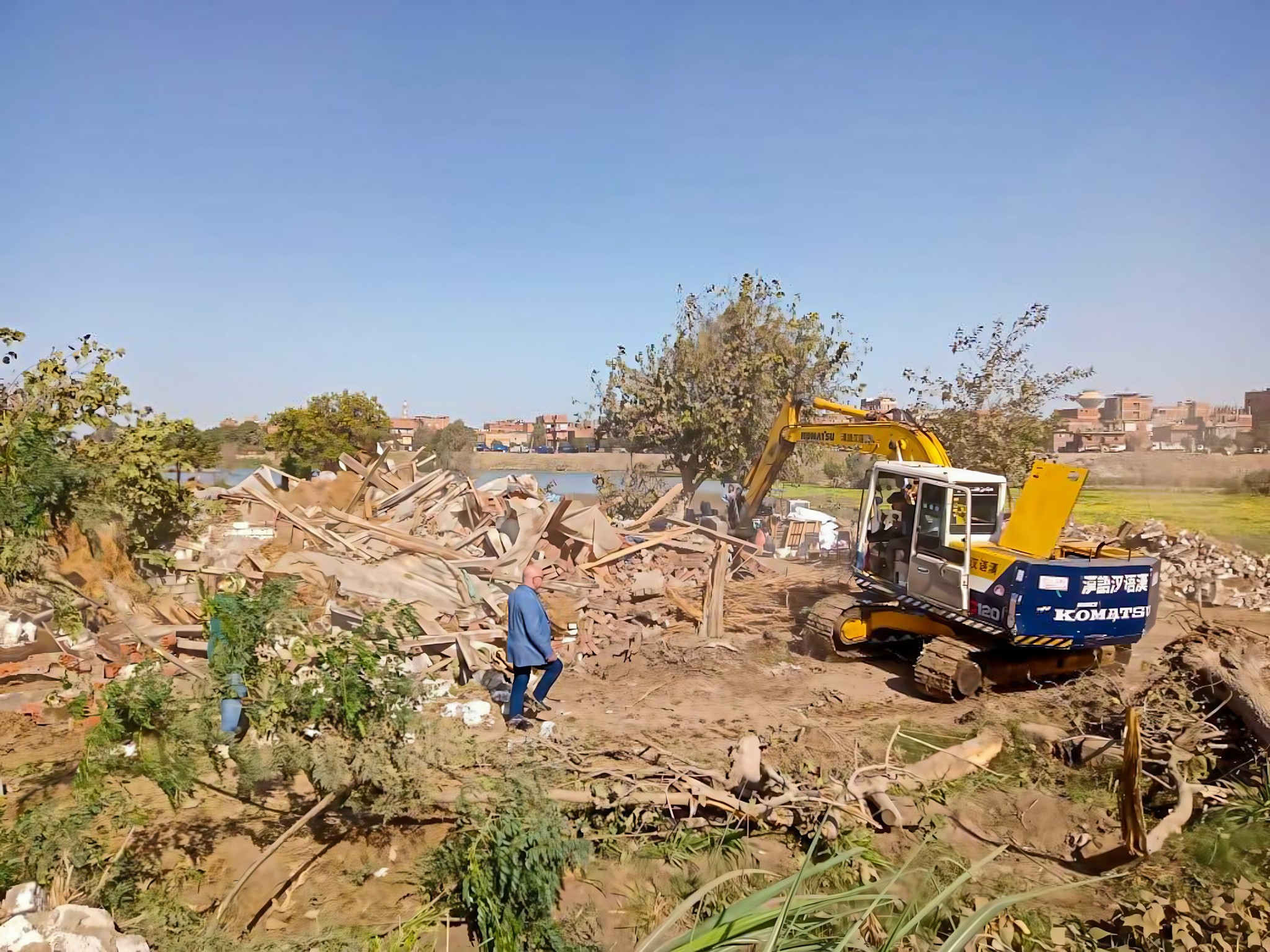 وقد تم تنفيذ إزالة الطريق بالكامل بطول ٥٠٠ متر من جسر نهر النيل وحتى الجزيرة الواقعة داخل المجرى، كما تم إزالة عدد (٨) مبانٍ مخالفة على مسار الطريق، بتواجد كثيف للمعدات (٤ حفارات على صنادل - ٢ حفار على كاتينه - ٢ لودر)، بالإضافة إلى توفير عدد (٣٠) قلاب من جانب محافظة المنوفية لنقل نواتج الردم خارج القطاع المائي، وسط تواجد أمني كبير من مديرية أمن المنوفية لتأمين الحملة.
