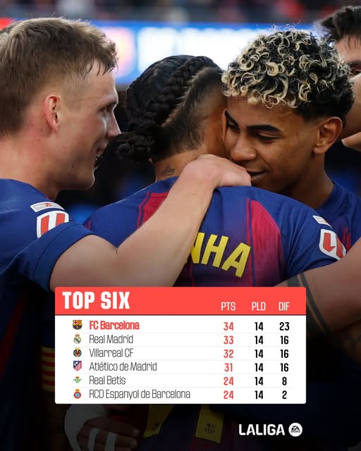 وقفز نادي برشلونة إلى صدارة ترتيب الدوري الإسباني برصيد 34 نقطة بعد فوزه في الجولة الـ14 من المسابقة.