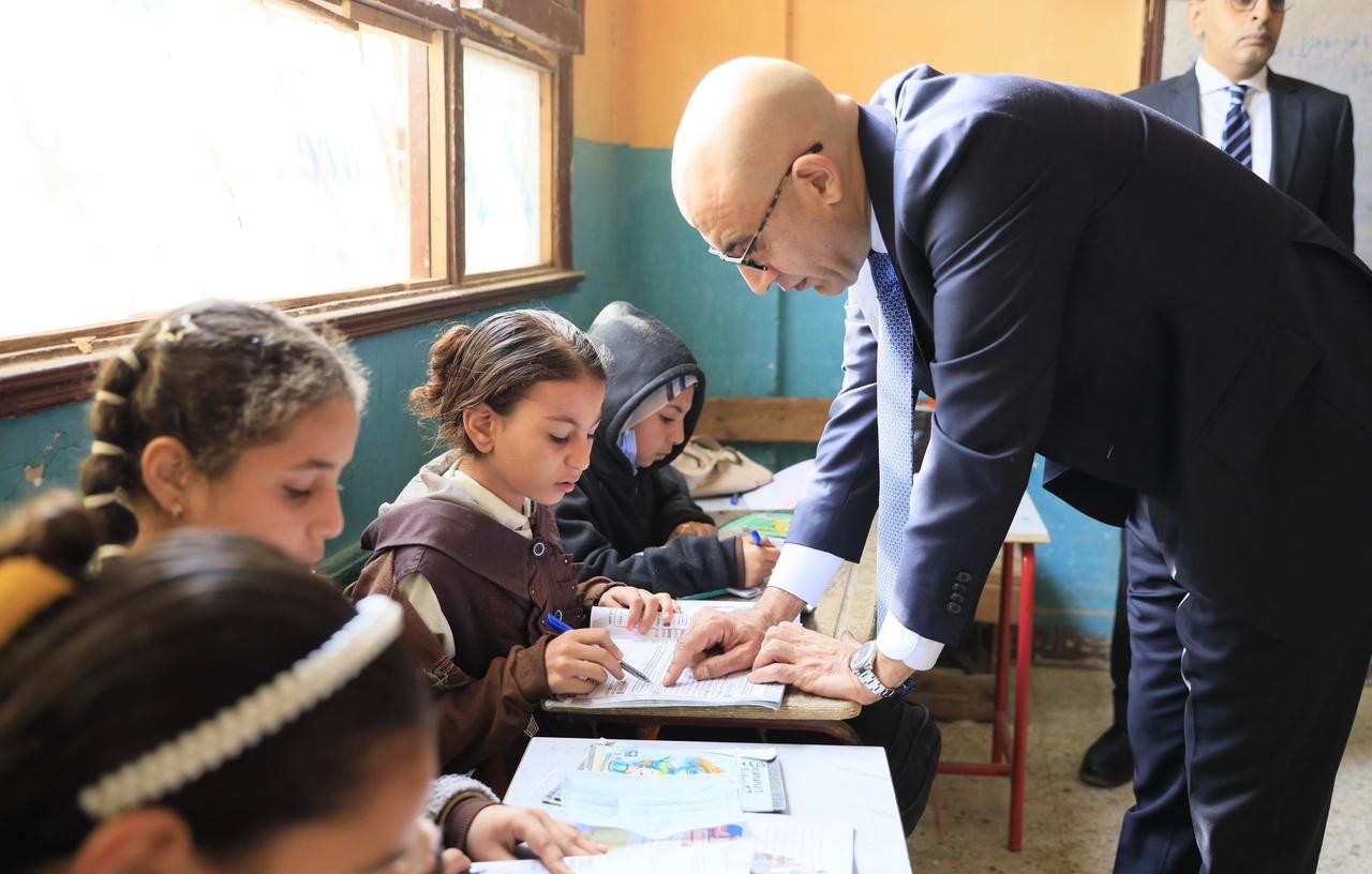 وتفقد الوزير خلال جولته داخل المدرسة فصولها الدراسية، وكتب الطلاب، وسجلات الحضور والغياب، كما تابع المستوى التحصيلي لعدد من الطلاب داخل الفصول.